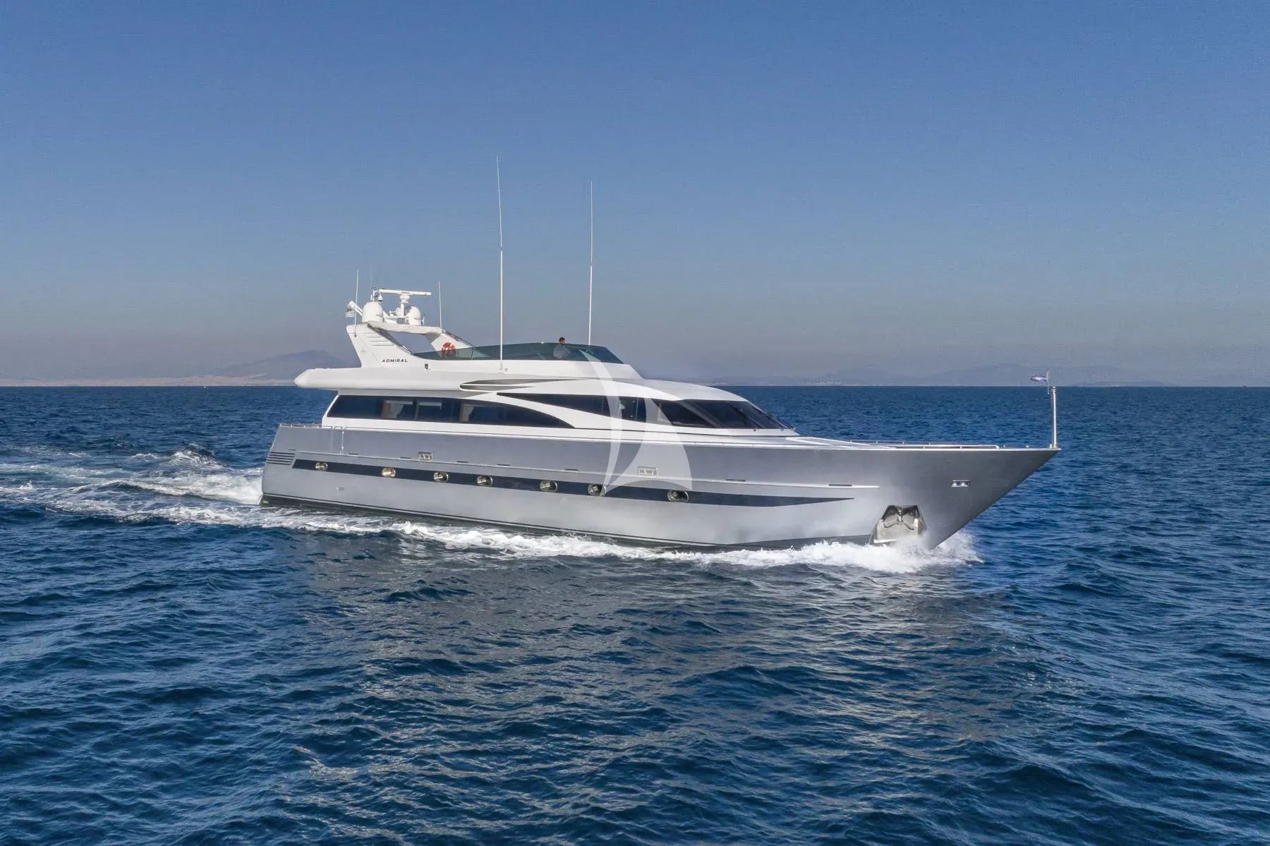 Step aboard ANDILIS, a distinguished 27-meter Admiral yacht that epitomizes Mediterranean elegance and performance. Built in 2002 and comprehensively refitted in 2020, this striking vessel showcases the refined design sensibilities of Paolo Caliari Design's naval architecture and Luca Dini's sophisticated interiors. Her sleek aluminum hull with distinctive silver paintwork cuts through azure waters at an impressive 22-knot cruising speed, while the spacious flybridge configuration maximizes both style and comfort for discerning charter guests. ANDILIS accommodates up to 10 guests across five thoughtfully appointed cabins, including a luxurious master suite, VIP stateroom, two twin cabins with pullman berths, and a flexible single cabin with pullman—all featuring en-suite facilities. Recent upgrades to the saloon and sun deck, complemented by fresh soft furnishings throughout, create an atmosphere of contemporary luxury perfectly suited for intimate gatherings or relaxed entertaining. Based year-round in Athens, ANDILIS provides the ideal platform for exploring Greece's legendary islands and hidden coastal gems. Her impressive array of water toys—including a Seabob, stand-up paddleboards, water skis, towables, and comprehensive snorkeling and fishing equipment—ensures endless aquatic adventures. Whether seeking the vibrant nightlife of Mykonos, the dramatic sunsets of Santorini, or the secluded coves of the Cyclades, ANDILIS delivers an authentic Greek island experience with the comfort and refinement that defines luxury yachting.
