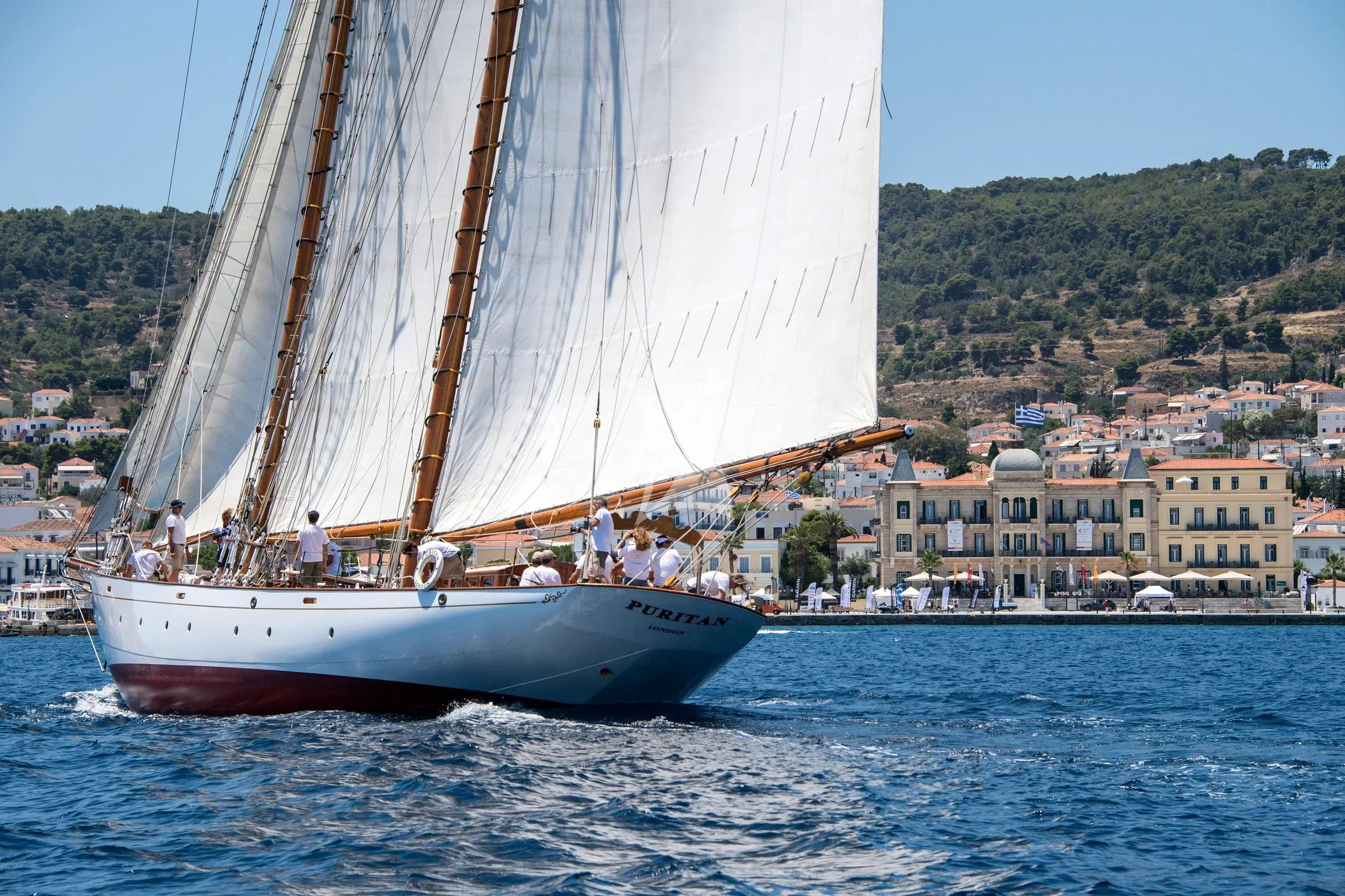 Step aboard PURITAN and experience the timeless elegance of classic yachting reimagined for the modern luxury charter guest. This magnificent 38.4-meter gaff-rigged schooner, originally crafted by the legendary Electric Boat Company in 1931 to John G. Alden's distinguished design, has been meticulously restored through a comprehensive 2023 refit while preserving her authentic character and commanding presence on the water. PURITAN offers an intimate charter experience for up to 8 guests across 4 beautifully appointed cabins, including a spacious master suite and two VIP cabins, each featuring private en-suite facilities. Her steel displacement hull and raised pilot-house configuration deliver both comfort and performance, cruising gracefully at 8 knots through the Mediterranean's most coveted destinations. Based in Porto Heli, Greece, she provides exceptional access to the Greek Isles while also offering unforgettable charters along Italy's Amalfi Coast, Sicily, Sardinia, and the French Riviera. Under the care of her professional 7-member crew, guests enjoy a comprehensive selection of water toys including waterskis, wakeboard, snorkeling equipment, and inflatables, all launched from her 5-meter tender. Modern amenities including air conditioning, WiFi connectivity, and entertainment systems seamlessly blend with her classic maritime heritage. For sailing enthusiasts, PURITAN presents the rare opportunity to participate in the prestigious Antiparos Cyclades Cup 2026, combining competitive racing excitement with luxury charter indulgence.