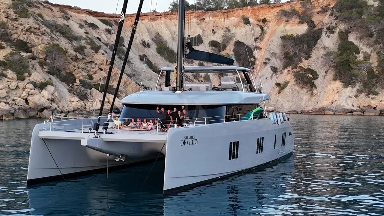 Introducing SHADES OF GREY, a spectacular 24-meter Sunreef catamaran that redefines luxury charter experiences with her 2024 launch delivering cutting-edge design and uncompromising comfort. This impressive multi-hull vessel accommodates up to nine guests across four elegantly appointed cabins, including a sumptuous master suite with king-size bed, walk-in wardrobe, and entertainment center, complemented by thoughtfully designed VIP and guest accommodations featuring queen-size berths and premium en-suite facilities. The flybridge catamaran's expansive 11.54-meter beam creates extraordinary living spaces both indoor and outdoor, while her shallow 2.2-meter draft opens access to secluded anchorages and pristine beaches throughout the Mediterranean. SHADES OF GREY excels in water sports entertainment, boasting an exceptional toy collection including SEABOB F5S units, an AUDI E-Tron jet-powered Fliteboard, wakeboard and water skiing equipment, plus an exhilarating inflatable slide cascading from the flybridge to the crystal-clear waters below. Based in Mallorca during summer months, this remarkable catamaran offers flexible cruising throughout the Balearics, French Riviera, Italian coastlines, and beyond, before transitioning to the Caribbean's most coveted destinations including St. Martin, St. Barths, and the British Virgin Islands. With Starlink connectivity, comprehensive entertainment systems, and RINA classification ensuring the highest safety standards, SHADES OF GREY delivers an unparalleled charter experience where modern luxury meets adventure on the world's most beautiful waters.