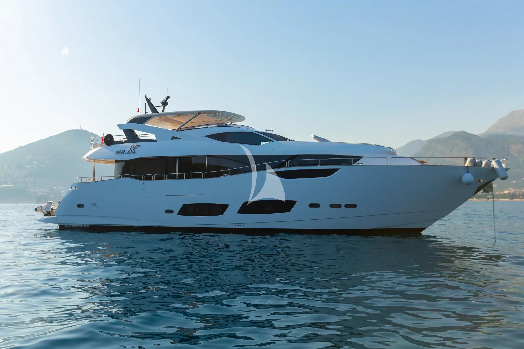 Discover the epitome of Mediterranean luxury aboard Mr. K Iriston, a stunning 28-meter Sunseeker flybridge yacht that seamlessly blends cutting-edge performance with sophisticated comfort. Launched in 2021, this immaculate vessel showcases the finest British craftsmanship with her sleek planing hull design and elegant smoked eucalyptus interiors finished in high-sheen satin. Accommodating up to 10 guests across five expertly appointed cabins, Mr. K Iriston features a magnificent main deck master suite and four additional guest quarters on the lower deck, including convertible twin configurations for ultimate flexibility. Her impressive 21-knot cruising speed and 500-nautical-mile range unlock the treasures of the French and Italian Riviera, from the glamorous ports of the Côte d'Azur to the dramatic coastlines of Corsica, Sardinia, and the legendary Amalfi Coast. The yacht's exceptional water sports collection elevates every charter experience, featuring dual SeaBob F5S units, cutting-edge Fliteboard electric hydrofoils, a powerful Sea-Doo GTX jet ski, and comprehensive gear for wakeboarding, waterskiing, and deep-sea fishing. Advanced stabilization systems ensure supreme comfort both underway and at anchor, while Starlink connectivity keeps guests seamlessly connected. Operating from prime Mediterranean bases in Olbia, Naples, and Genoa, Mr. K Iriston delivers an unparalleled charter experience where luxury meets adventure in the world's most coveted cruising grounds.
