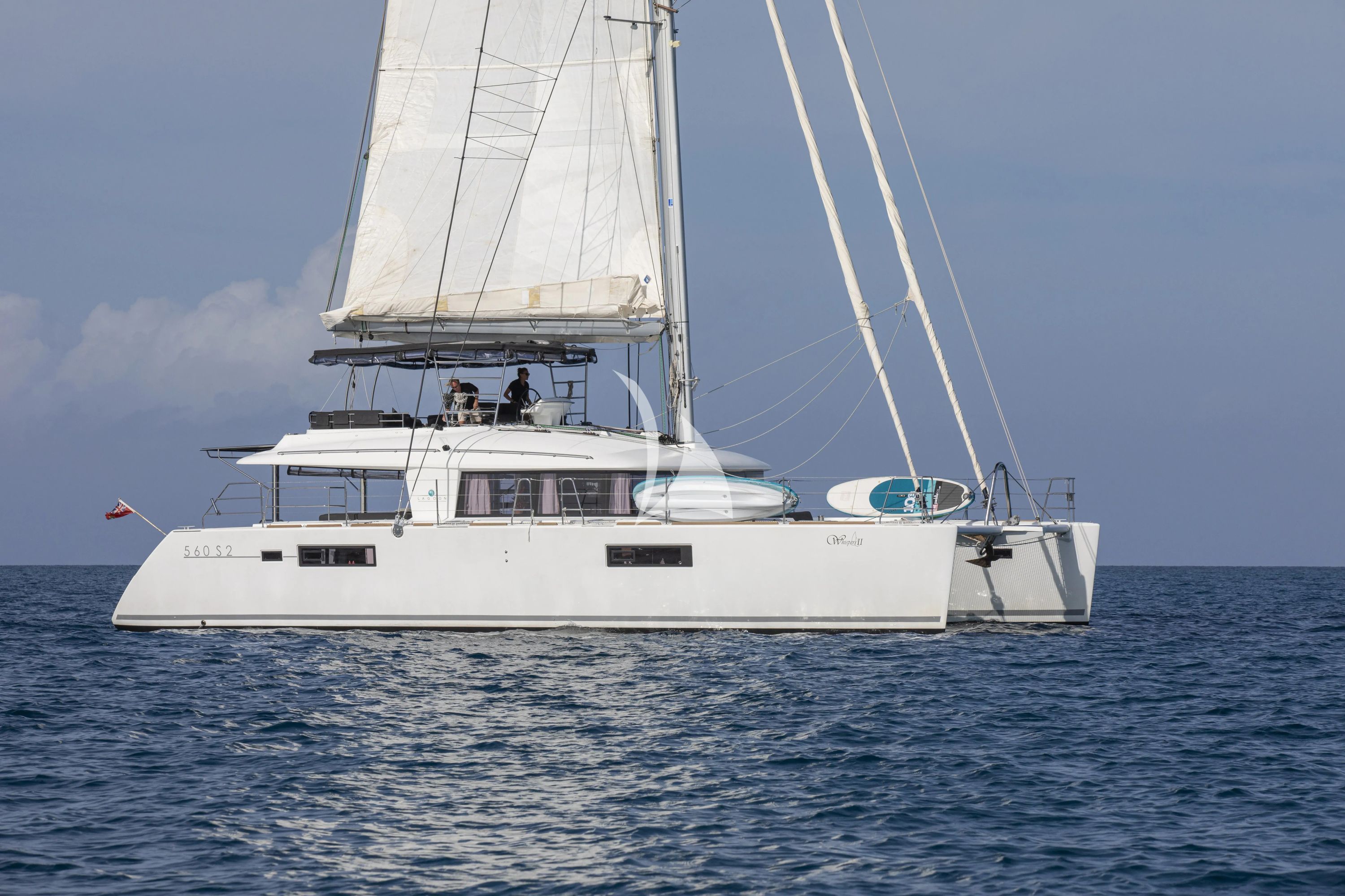 Step aboard WHISPERS II, a stunning 56-foot Lagoon catamaran that exemplifies the perfect fusion of French naval architecture and contemporary luxury charter living. Built in 2016 and comprehensively refitted in 2024, this exceptional vessel showcases the renowned expertise of VPLP design with her spacious multi-hull configuration and elegant flybridge superstructure. Her impressive 31-foot beam creates extraordinary volume throughout, offering an unparalleled sense of space and stability that sets catamarans apart in the luxury charter market. Accommodating up to eight guests across four beautifully appointed double cabins, WHISPERS II ensures privacy and comfort for every guest. The yacht's shallow 5-foot draft opens access to secluded anchorages and pristine beaches throughout the Bahamas that deeper vessels simply cannot reach. Based year-round in Nassau, she offers the perfect gateway to explore the crystal-clear waters, vibrant coral reefs, and stunning cays of this tropical paradise. Adventure awaits with an impressive array of water toys including dual paddle boards, kayaks, wakeboard, and comprehensive snorkeling equipment, plus a well-equipped Caribe tender for seamless beach transfers and exploration. Whether seeking exhilarating water sports or tranquil sunset cruising, WHISPERS II delivers an authentic Caribbean charter experience where azure waters meet endless horizons, creating memories that last a lifetime.