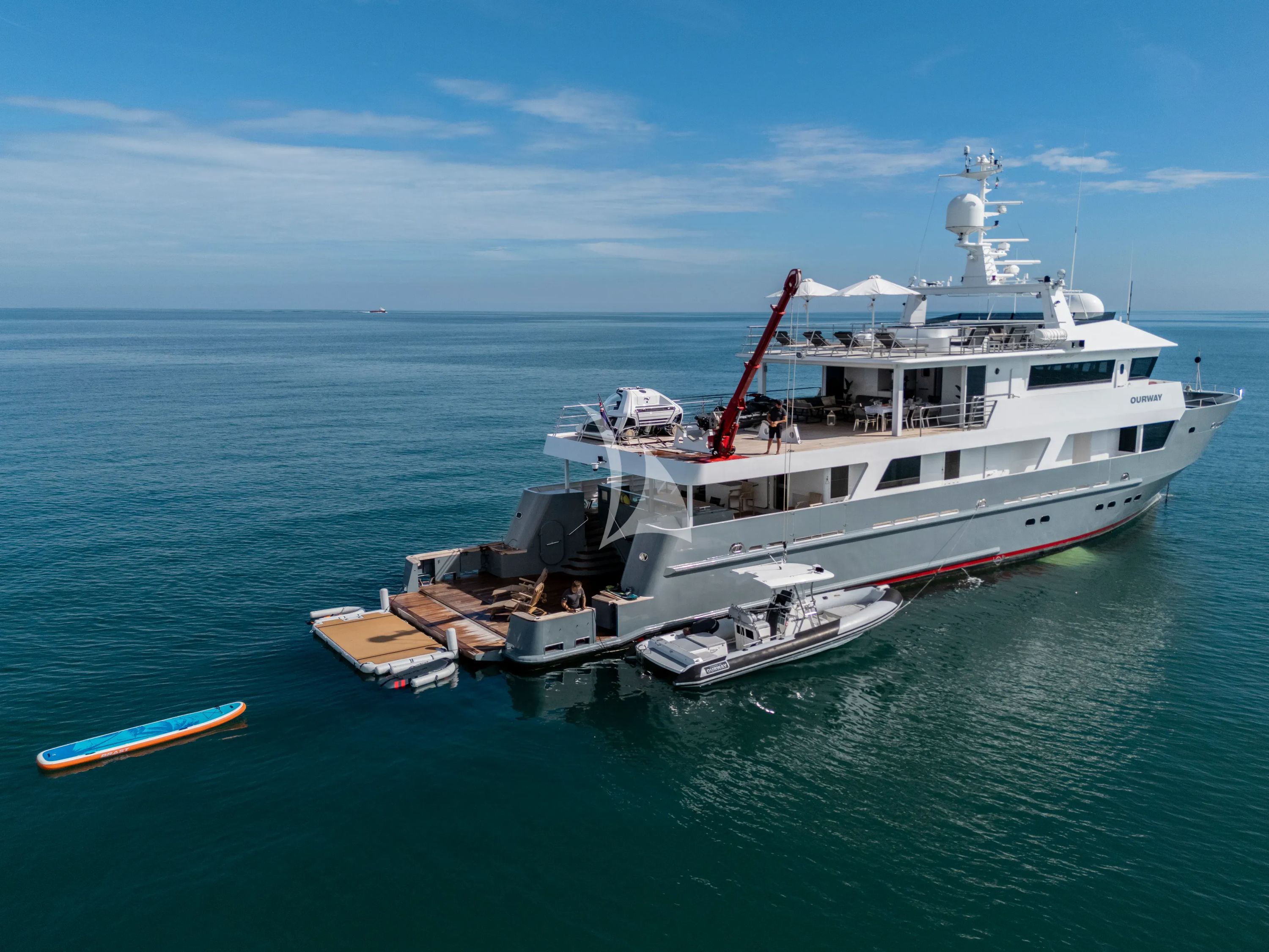 Discover the perfect blend of rugged exploration and refined luxury aboard OURWAY, a magnificent 36.8-meter explorer yacht that redefines adventure on the water. Built by renowned naval architects Tenix Defence Australia and meticulously refitted in 2022, this steel-hulled expedition vessel combines exceptional seaworthiness with sophisticated comfort. Her robust displacement hull and impressive 4,000 nautical mile range open up endless possibilities for extended cruising, while advanced stabilization systems ensure supreme comfort both underway and at anchor. OURWAY accommodates up to eight guests across four beautifully appointed cabins, including a spacious master suite with king bed, a VIP queen cabin, and additional double and twin configurations. The yacht's recent comprehensive refit has transformed every detail, from luxurious new furnishings and mattresses to refreshed carpeting and contemporary exterior seating areas. Modern amenities include Starlink connectivity, individual cabin entertainment systems, and comprehensive climate control throughout. The yacht's extraordinary collection of water toys sets her apart in the charter market, featuring everything from SeaBob-type scooters and flyboards to a remarkable submarine capable of diving to 100 meters. Additional equipment includes a Sea-Doo jet ski, wakeboard, waterskis, paddleboards, and even yoga equipment for wellness enthusiasts. Based in Montenegro's stunning Adriatic waters, OURWAY provides privileged access to one of Europe's most captivating cruising destinations, where dramatic mountains meet crystal-clear waters and historic coastal towns offer endless cultural discoveries.