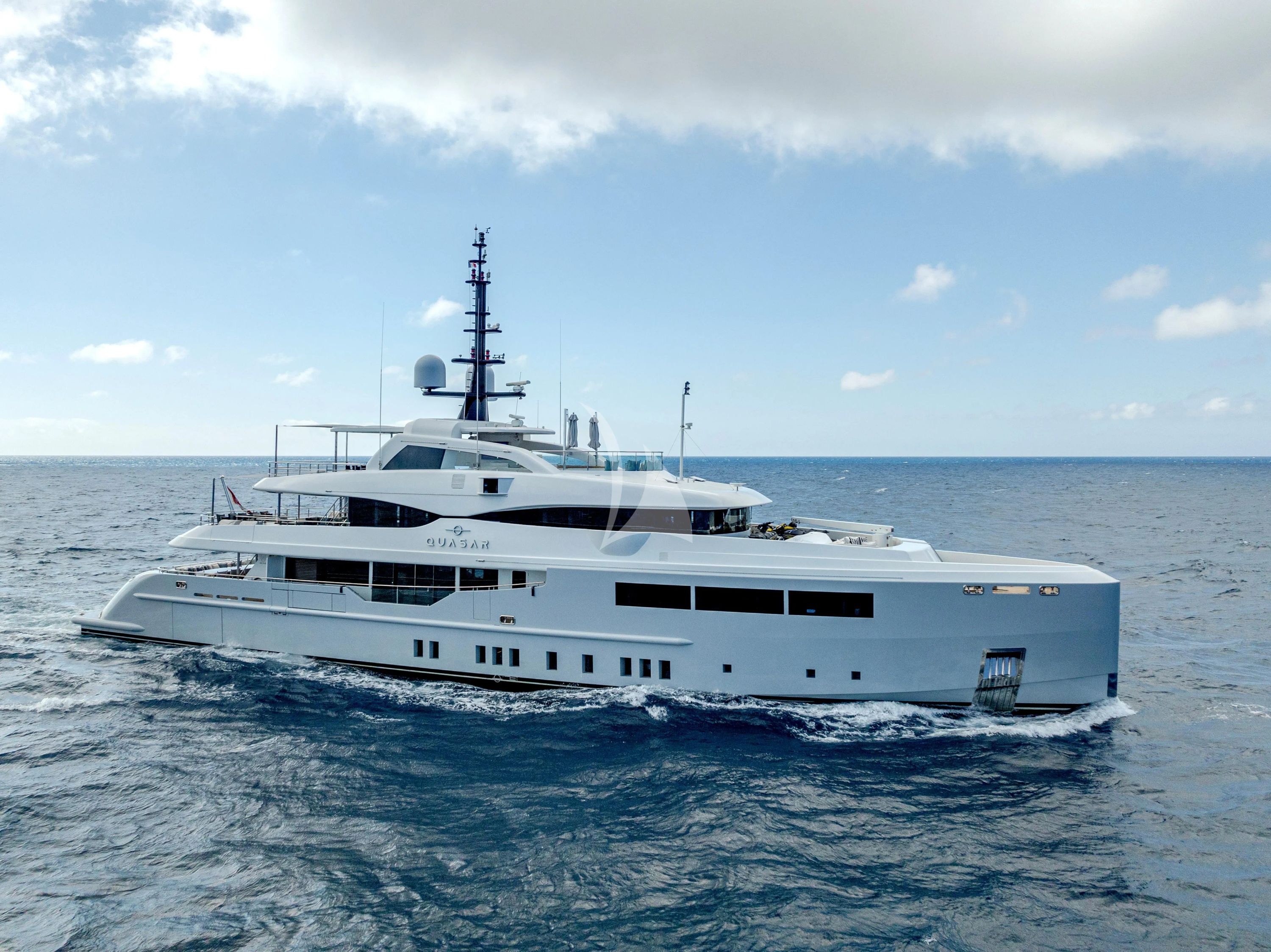 Freshly emerged from her comprehensive 2024 refit, the magnificent 46.8-meter QUASAR represents the pinnacle of Turkish craftsmanship from renowned Bilgin Yachts. This steel-hulled displacement yacht showcases the sophisticated design collaboration between Bilgin's naval architects and H2 Yacht Design's interior expertise, creating an exceptional charter platform that seamlessly blends contemporary luxury with timeless elegance. QUASAR's thoughtfully configured accommodation welcomes up to 12 guests across six beautifully appointed cabins, headlined by a main deck Owner's suite featuring a private office that transforms into a cinema room. The full-beam VIP suite maximizes the 9.2-meter beam for unparalleled space and comfort, while two flexible convertible cabins with additional Pullman berths ensure versatility for families and groups. With her tri-deck configuration and zero-speed stabilizers, guests enjoy both expansive social areas and serene stability whether anchored in glamorous Cannes or exploring the Mediterranean's most coveted destinations. The yacht's impressive arsenal of water toys elevates every charter experience, featuring a newly refurbished 9.44-meter Boston Whaler chase tender, dual Yamaha jet skis, three SeaBobs, cutting-edge E-Foils, and comprehensive kayaking and paddleboard equipment. As an RYA Training Center, QUASAR offers unique learning opportunities alongside pure indulgence. With her professional crew of nine, comprehensive Starlink connectivity, and 5,000-nautical-mile range, this exceptional vessel delivers unforgettable luxury experiences across the world's most prestigious cruising grounds.