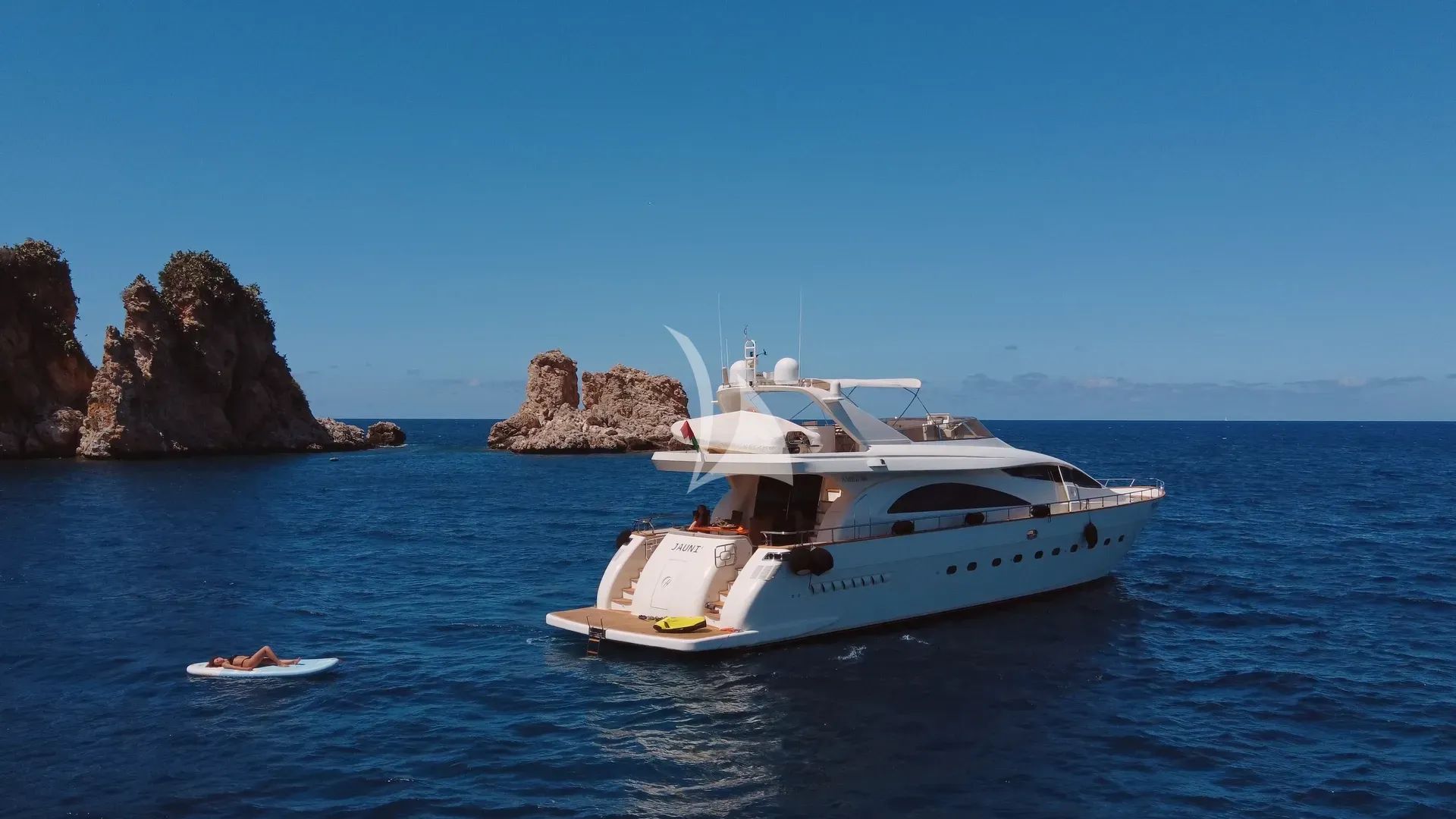 Experience the quintessential Mediterranean charter aboard JAUNI, a meticulously maintained 26.2-meter Amer yacht that perfectly balances performance with luxury. Following her comprehensive 2025 refit, this Italian-flagged vessel showcases impeccable condition and modern amenities throughout her elegantly appointed interiors. With her planing hull design and impressive 27-knot maximum speed, JAUNI delivers both exhilarating cruising performance and refined comfort for up to eight guests across four beautifully designed suites. Based in the captivating port of Palermo, JAUNI offers privileged access to Sicily's most enchanting destinations, from the dramatic coastlines of Milazzo to the historic charm of Catania. Her flybridge configuration provides exceptional outdoor living spaces, while the comprehensive collection of water toys ensures endless entertainment on the crystal-clear waters of the Mediterranean. Guests can explore underwater realms with the Seabob and sea scooters, enjoy high-energy adventures with the Waverunner, or embrace tranquil moments on paddleboards and with professional-grade fishing equipment. The yacht's thoughtful design extends to every detail, from individually climate-controlled cabins featuring entertainment systems to seamless WiFi connectivity throughout. With her shallow 1.9-meter draft, JAUNI can access secluded anchorages and pristine beaches that larger vessels cannot reach, creating intimate experiences in Sicily's most spectacular coastal hideaways. This exceptional charter platform delivers authentic Italian hospitality combined with world-class yachting amenities.