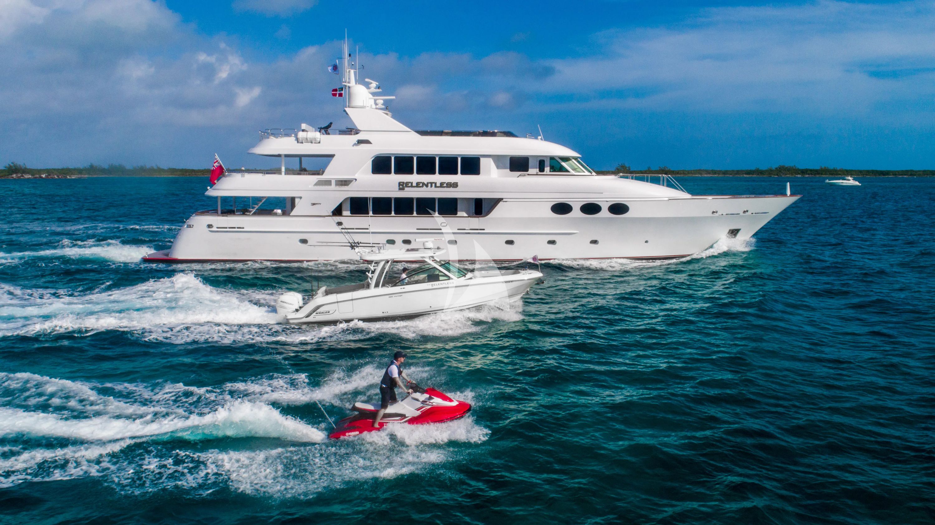 Experience the perfect fusion of classic American craftsmanship and contemporary luxury aboard RELENTLESS, a magnificent 44.2-meter Trinity Yachts creation that exemplifies refined charter excellence. Following her comprehensive 2019 refit and recent 2024 updates including a complete exterior paint refresh and interior enhancements, this tri-deck aluminum beauty presents an impeccable platform for discerning guests seeking the ultimate yachting adventure. RELENTLESS accommodates up to 10 guests across five lavish staterooms, headlined by a spectacular king master suite positioned on deck featuring dual en-suite bathrooms with Jacuzzi tub and expansive shower. Four additional guest staterooms below deck, including two king cabins, one queen, and one twin configuration, ensure every guest enjoys privacy and comfort with dedicated en-suite facilities. The yacht's impressive beam of 8.23 meters creates generous living spaces throughout her thoughtfully designed George Paturzo interior. Adventure enthusiasts will delight in RELENTLESS's exceptional water toys collection, featuring twin Yamaha Wave Runners, transparent kayaks, paddleboards, wakeboarding and water skiing equipment, plus a impressive 32-foot Vantage Boston Whaler chase tender for extended exploration. Whether cruising New England's pristine coastlines during summer months or discovering the Caribbean's turquoise waters from her St. Martin winter base, RELENTLESS delivers an unparalleled charter experience with her 1,500-2,000 nautical mile range and stabilization systems ensuring comfort underway and at anchor.