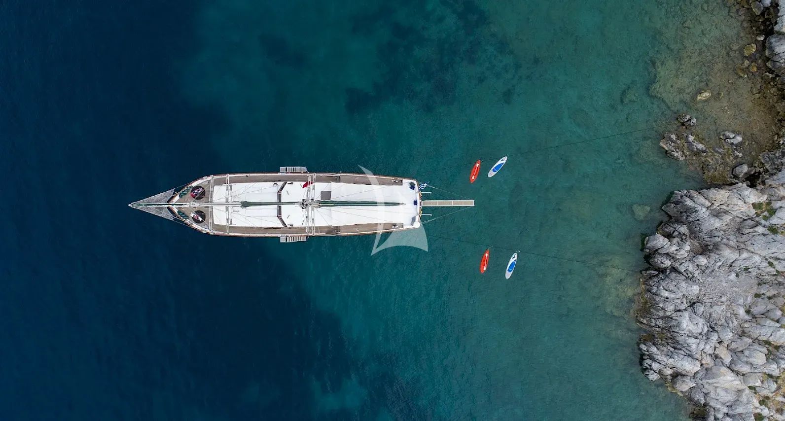 Experience the timeless elegance of ECCE NAVIGO, a distinguished 31-meter motor-sailer that seamlessly blends classic maritime heritage with contemporary luxury. Built in 1997 and thoughtfully refitted in 2017, this exquisite wooden-hulled vessel showcases traditional Greek craftsmanship while delivering modern comfort for discerning charter guests. Her graceful lines and authentic character create an atmosphere of refined sophistication as she glides through the crystalline waters of the Aegean at a leisurely 10 knots. Accommodating up to 10 guests across five beautifully appointed staterooms, ECCE NAVIGO offers flexible sleeping arrangements with one master suite, two additional double cabins, and two twin staterooms, each featuring private ensuite facilities. The yacht's thoughtful layout ensures privacy and comfort for all guests, while her spacious 7.5-meter beam provides generous living areas perfect for relaxation and entertaining. From her Athens base, ECCE NAVIGO opens the door to Greece's most coveted destinations, offering an impressive arsenal of water toys to enhance your Aegean adventure. Dive into azure waters with professional snorkeling gear, master the waves with waterskis and wakeboards, or explore hidden coves using kayaks and stand-up paddleboards. The yacht's well-equipped tender with specialized water sports equipment ensures endless aquatic entertainment, while onboard amenities including air conditioning, WiFi connectivity, and salon entertainment systems guarantee comfort between island-hopping excursions through Greece's legendary archipelago.