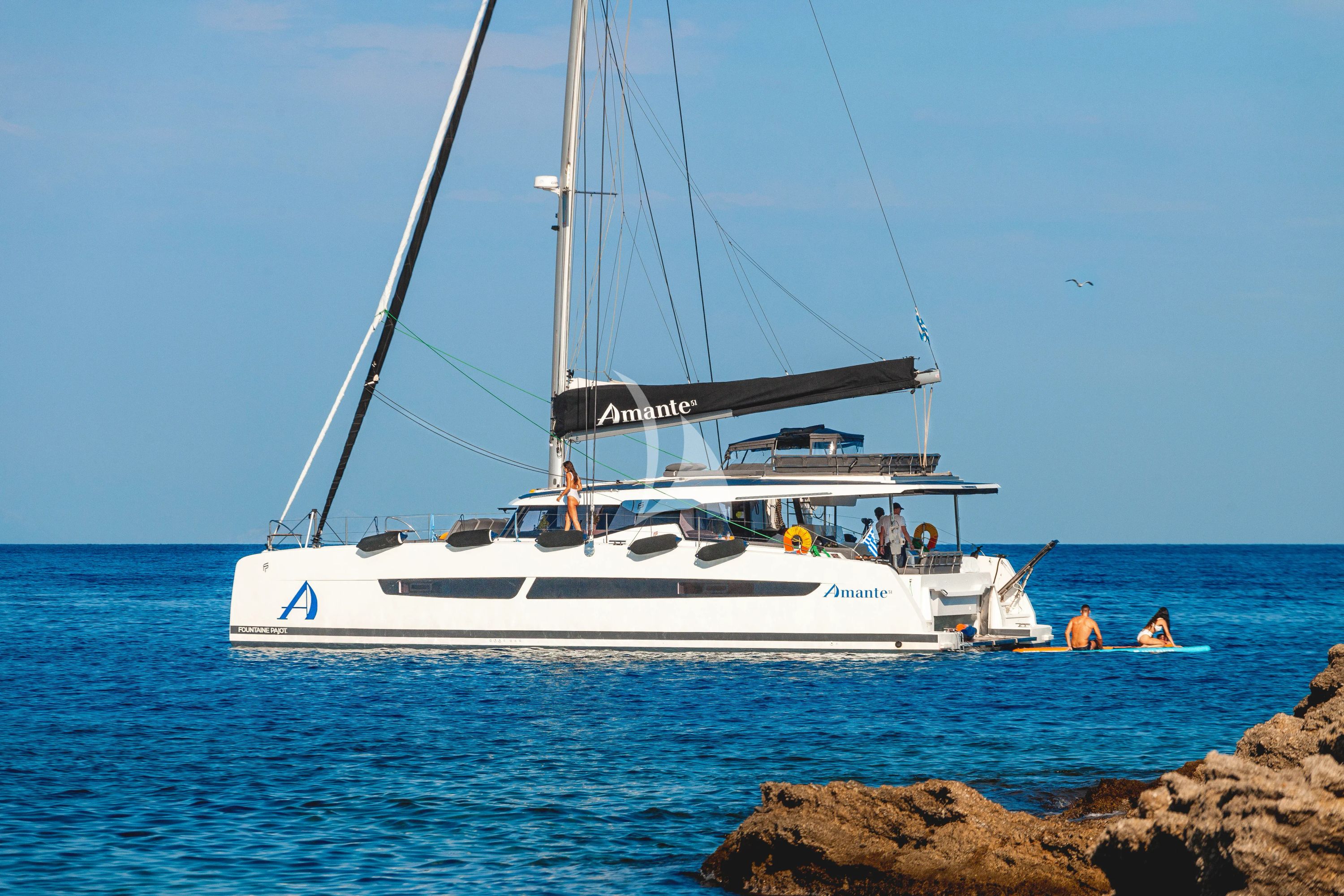 Experience the pinnacle of modern catamaran luxury aboard AMANTE, a stunning 2023 Fountaine Pajot masterpiece that redefines charter excellence in the Greek islands. This immaculate 52-foot sailing catamaran combines cutting-edge design by renowned naval architects Berret-Raccoupeau with exceptional comfort for up to eight guests across four beautifully appointed cabins. The master suite features a queen-size bed, 32-inch multimedia screen, and private safe, while three additional double cabins each boast en-suite facilities. Every detail has been carefully considered, from full air conditioning and USB charging ports to premium Molton Brown amenities and complimentary sunscreen. AMANTE's impressive collection of water toys transforms every anchorage into an aquatic playground. Two Seabobs and sea scooters provide thrilling underwater exploration, while dual SUPs and a multifunctional board cater to all skill levels. The tender, inflatable towables, and comprehensive snorkeling and fishing gear ensure endless entertainment for guests of all ages. Modern amenities include Starlink WiFi connectivity, allowing you to stay connected while exploring remote coves and pristine beaches. Based in the captivating Dodecanese, AMANTE offers unparalleled access to Rhodes and Kos, with optional relocations to the cosmopolitan allure of Mykonos or the authentic charm of Paros. Whether seeking secluded anchorages, vibrant nightlife, or rich cultural experiences, this exceptional catamaran provides the perfect platform for discovering Greece's most enchanting destinations in absolute comfort and style.