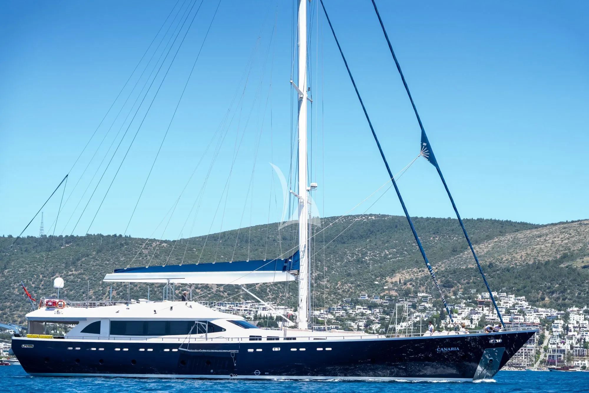 CANARIA presents an exceptional charter opportunity along Turkey's stunning coastline, combining the timeless elegance of traditional craftsmanship with contemporary luxury amenities. This magnificent 37-meter motor-sailer, built by the renowned Bodrum Shipyard in 2013, showcases the finest in laminated cold-molded wood construction, creating a vessel that is both visually striking and supremely seaworthy. Her classic lines and sophisticated profile make her a standout presence in any harbor, while her versatile sail-and-motor configuration offers guests the flexibility to cruise under power or embrace the romance of sailing. Thoughtfully designed to accommodate up to 12 guests across six beautifully appointed cabins, including a master suite, VIP cabin, two double cabins, and two triple cabins, CANARIA ensures comfort and privacy for all aboard. Every cabin features individual entertainment systems, while the main saloon provides an elegant gathering space with satellite television and seamless WiFi connectivity throughout the yacht. Based in the captivating port of Bodrum, CANARIA opens the door to Turkey's most enchanting cruising grounds, from the pristine bays of the Turkish Riviera to the historic islands of the Dodecanese. Her impressive collection of water toys—including kayaks, paddleboards, water-skis for both adults and children, wakeboard, and a powerful tender—ensures endless entertainment on the crystal-clear waters of the Eastern Mediterranean. With year-round availability from her Bodrum base, CANARIA delivers an authentic Turkish gulet experience enhanced by modern luxury standards.