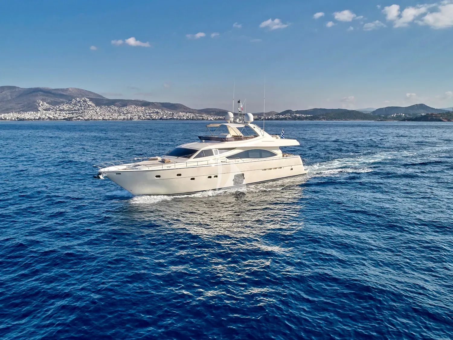 JULIE M represents the perfect fusion of Ferretti's renowned Italian craftsmanship and contemporary luxury, enhanced by her comprehensive 2022 refit that ensures every detail meets the highest modern standards. This stunning 25.3-meter flybridge motor yacht, designed by the acclaimed Zuccon International Project, offers an exceptional charter experience from her Athens base, providing seamless access to Greece's legendary island destinations and the crystal-clear waters of the Aegean and Ionian Seas. Accommodating up to eight guests across four beautifully appointed cabins, JULIE M features a master suite with king-size bed and walk-in closet, a VIP cabin with double bed, and two twin cabins—one convertible to double—all with private en-suite facilities. Her impressive cruising speed of 25 knots ensures effortless island hopping while maintaining the comfort that discerning charter guests expect. The yacht's exceptional water toy collection transforms every anchorage into an adventure playground, featuring two state-of-the-art Seabob F5S units, paddleboards, comprehensive scuba diving equipment, waterskis, and an inflatable beach platform for ultimate waterside relaxation. Recent investments including new exterior fabrics, salon flooring, and upholstery reflect the owner's commitment to maintaining JULIE M in pristine condition. With stabilizers for comfortable at-anchor experiences, comprehensive entertainment systems, and 4/5G connectivity throughout, she delivers the sophisticated amenities that define exceptional luxury yacht charters in the Greek islands.