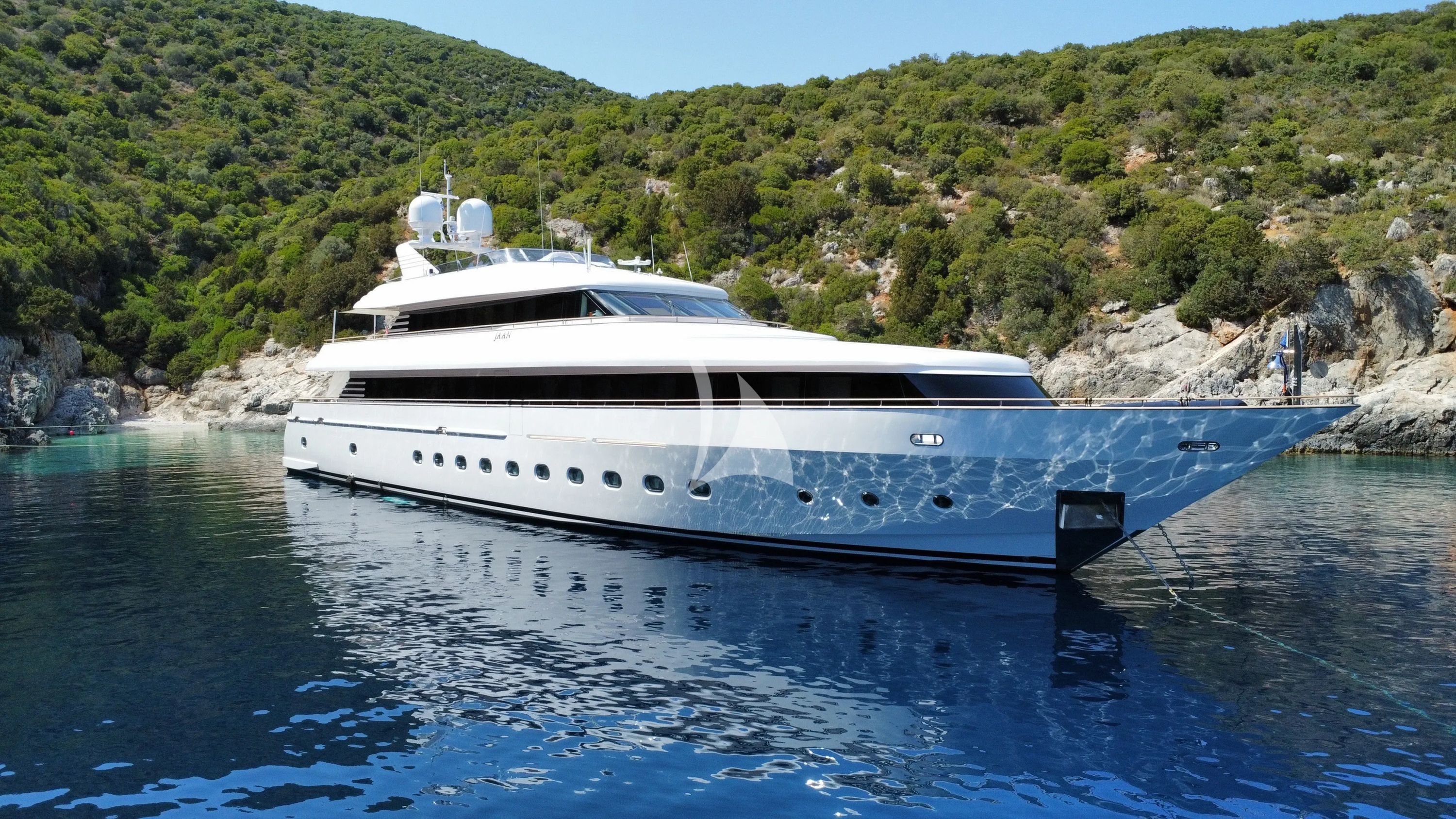 JAAN presents an exceptional charter opportunity, combining timeless elegance with modern sophistication following her comprehensive 2024 refit. This stunning 42-meter tri-deck yacht showcases impeccable Italian design by Studio Giorgio Vafiadis, now enhanced with a pristine all-white exterior and thoughtfully upgraded amenities including expanded outdoor dining spaces and luxurious new fabrics throughout. Accommodating twelve guests across six beautifully appointed staterooms, JAAN offers the perfect balance of privacy and social spaces. The full-beam master suite on the upper deck serves as a private retreat with king-size bed, walk-in closet, dedicated saloon and office, while the VIP stateroom features exclusive upper deck access and premium amenities. Four additional well-appointed cabins ensure every guest enjoys exceptional comfort and style. Based year-round in Athens' prestigious Marina Athinon, JAAN provides seamless access to the Greek Isles' most coveted destinations. Her impressive collection of water toys transforms any anchorage into an aquatic playground – from cutting-edge e-foils and powerful Seabobs to exhilarating Sea-Doo watercraft and comprehensive water sports equipment. Advanced stabilization systems ensure smooth cruising and comfortable nights at anchor, while state-of-the-art connectivity including Starlink internet keeps guests seamlessly connected. With her perfect blend of performance, luxury, and Mediterranean positioning, JAAN delivers an unforgettable charter experience among Greece's legendary islands and crystalline waters.
