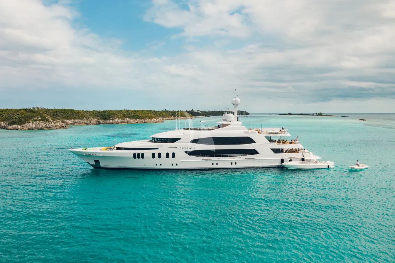 Experience the pinnacle of luxury charter aboard SKYFALL, a magnificent 57.91-meter Trinity Yachts masterpiece that seamlessly blends sophisticated design with exceptional performance. Built in 2010 and meticulously maintained with a comprehensive 2020 refit, this tri-deck superyacht accommodates 12 guests across six exquisitely appointed staterooms, including a spectacular split-level master suite featuring soaring ceilings, rich wood finishes, and a private office with lounge area. SKYFALL's impressive array of water toys transforms every charter into an aquatic adventure playground. From the commanding 37-foot Intrepid tender and Williams jet tender to dual Seadoo wave runners and cutting-edge Seabobs, guests enjoy unlimited access to the ocean's pleasures. The collection extends to JetSurf electric surfboards, Hobie pedal boards, Gocycle e-bikes, and comprehensive watersports equipment, ensuring every guest finds their perfect maritime pursuit. Cruising effortlessly at 13 knots with a remarkable 4,600-nautical-mile range, SKYFALL offers unparalleled flexibility for extended voyages across the Mediterranean's azure waters during summer seasons and the pristine Caribbean and Bahamas throughout winter months. Her semi-displacement aluminum hull, advanced stabilization systems, and thoughtful Patrick Knowles interior design create an atmosphere of refined elegance, while comprehensive entertainment systems and Starlink connectivity ensure guests remain connected to both adventure and comfort throughout their charter experience.