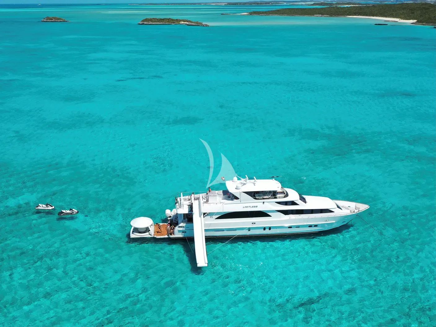Experience unparalleled luxury aboard LIMITLESS, a stunning 30.78-meter Hargrave motor yacht that perfectly embodies her name through limitless possibilities for adventure in the pristine waters of the Bahamas. With her sophisticated flybridge design and freshly completed 2025 refit featuring new generators, upgraded seating, and enhanced finishes, this exceptional vessel offers the perfect platform for exploring Nassau and beyond in ultimate comfort and style. LIMITLESS accommodates eight guests in four elegantly appointed double cabins, with interior design by the renowned Yacht Interiors by Shelley creating an atmosphere of refined luxury throughout. Her impressive 3,700-nautical-mile range and advanced stabilization system ensure smooth, comfortable cruising whether you're island-hopping through the Exumas or anchored in crystal-clear waters. The yacht's comprehensive entertainment systems, including Starlink connectivity, keep guests connected while maintaining the serenity of their maritime escape. What truly sets LIMITLESS apart is her extraordinary collection of water toys that transform every charter into an aquatic playground. From the exhilarating 32-foot Intrepid center console and dual Yamaha Wave Runners to cutting-edge E-Foil surfboards and Sea Bobs, adventure enthusiasts will find endless excitement. The impressive 25-foot slide, floating island, and comprehensive fishing equipment ensure that every guest, regardless of age or interest, discovers their perfect way to embrace the Bahamian waters. Based year-round in Nassau, LIMITLESS offers seamless access to the Caribbean's most coveted destinations.