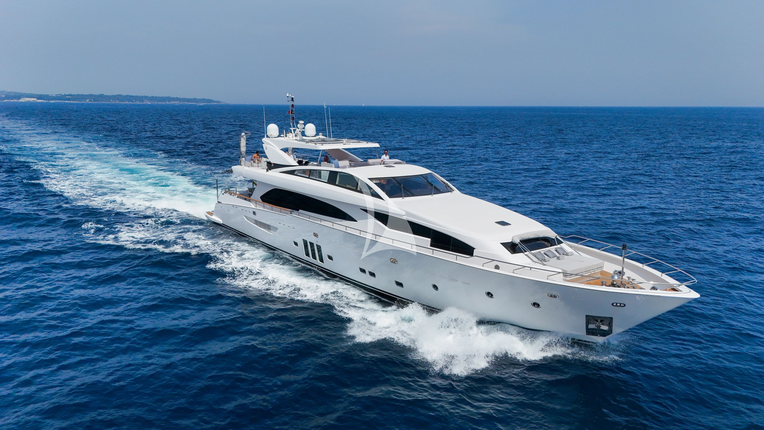 Experience the pinnacle of French maritime craftsmanship aboard M/Y Millesime, a stunning 37-meter Couach masterpiece launched in 2020. This contemporary flybridge yacht seamlessly blends timeless styling with cutting-edge performance, offering discerning charter guests an unparalleled luxury experience on the French Riviera. With her semi-displacement hull configuration, Millesime achieves an impressive cruising speed of 18 knots and maximum speed of 28 knots, ensuring effortless exploration of the Mediterranean's most coveted destinations. Accommodating up to 10 guests across five beautifully appointed ensuite cabins, Millesime features a sophisticated layout including a master suite, main deck VIP stateroom, mini VIP cabin, and two twin cabins. Her professional crew of five ensures impeccable service throughout your charter, while advanced stabilization systems guarantee comfort both underway and at anchor. Based year-round in glamorous Cannes, she provides the perfect platform for exploring the Côte d'Azur's legendary ports and hidden gems. Millesime truly excels in her water sports offerings, featuring an extraordinary collection including a 9.5-meter chase tender with twin Yamaha 300hp engines, Sea-Doo watercraft, flyboard, seascooters, and comprehensive equipment for wakeboarding, water skiing, and snorkeling. Her dedicated beach club creates the ideal launch point for aquatic adventures, while modern amenities including 4/5G internet, smart TVs throughout, and full air conditioning ensure contemporary luxury meets outdoor excitement.