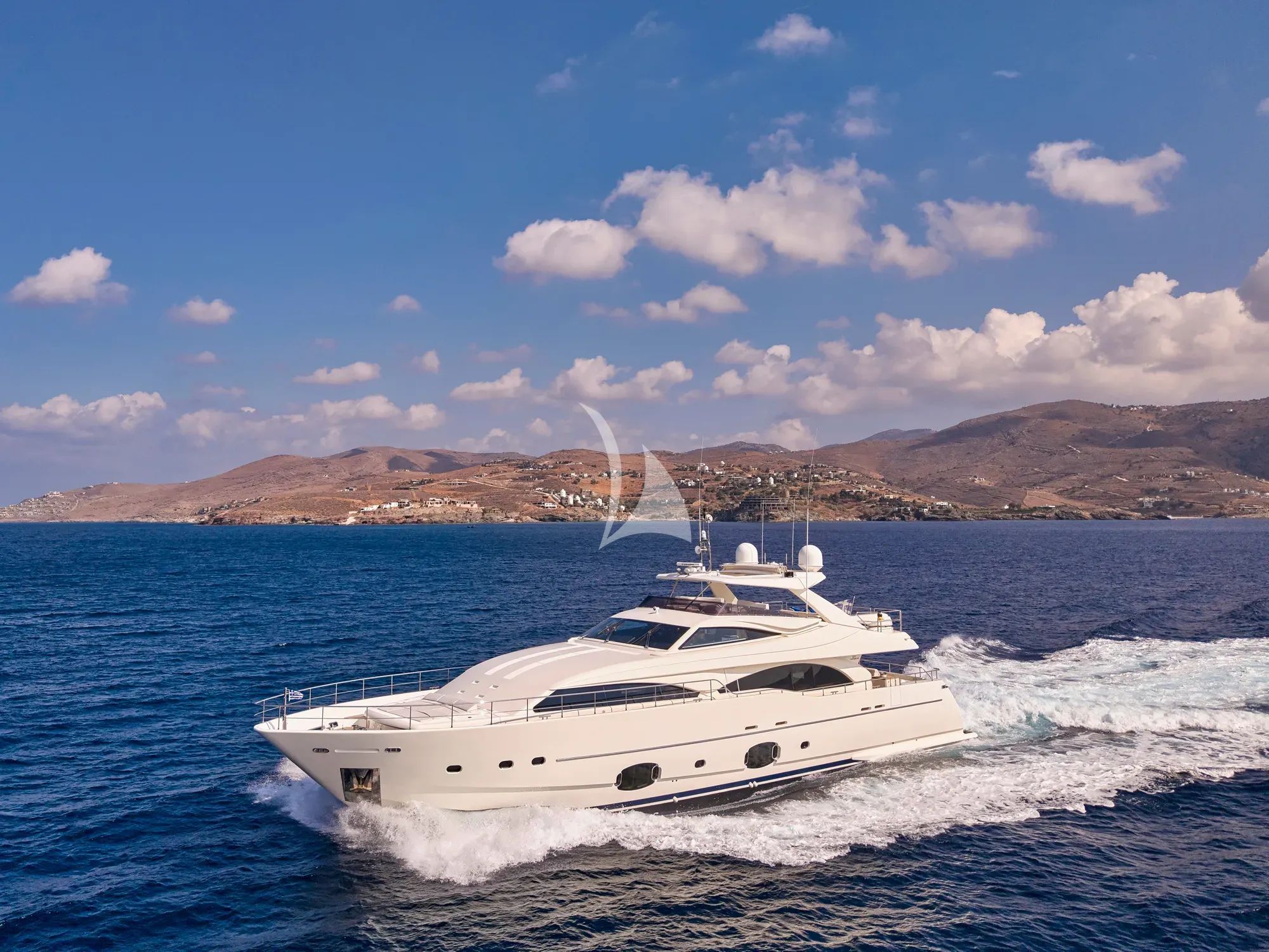 WATCH ME commands attention as a stunning 29.7-meter Ferretti masterpiece, expertly reimagined through a comprehensive 2024 refit that elevates every aspect of this exceptional charter yacht. Based in the captivating waters of Athens, this sophisticated vessel seamlessly blends Italian craftsmanship with contemporary luxury, featuring elegant interiors by renowned Zuccon International Project that create an atmosphere of refined comfort throughout her five beautifully appointed cabins. Accommodating up to twelve guests in absolute comfort, WATCH ME offers a magnificent master suite on the main deck complete with king-size bed and walk-in closet, while four additional cabins on the lower deck provide flexible sleeping arrangements including a convertible twin-to-double option. Her impressive flybridge configuration and planing hull design deliver exhilarating performance with cruising speeds of 20 knots, making every journey between Greece's legendary islands as thrilling as the destinations themselves. The yacht's extraordinary water sports arsenal transforms every charter into an aquatic playground, featuring dual Seabob F5S units, a cutting-edge Fliteboard, Sea-Doo Spark jetski, and an impressive collection including paddleboards, seascooters, and both adult and children's waterskis. Modern amenities including 4/5G internet connectivity, Smart TVs throughout, and at-anchor stabilizers ensure guests enjoy seamless luxury while exploring the azure waters of the Greek islands, making WATCH ME the perfect vessel for discerning charterers seeking both adventure and sophistication.