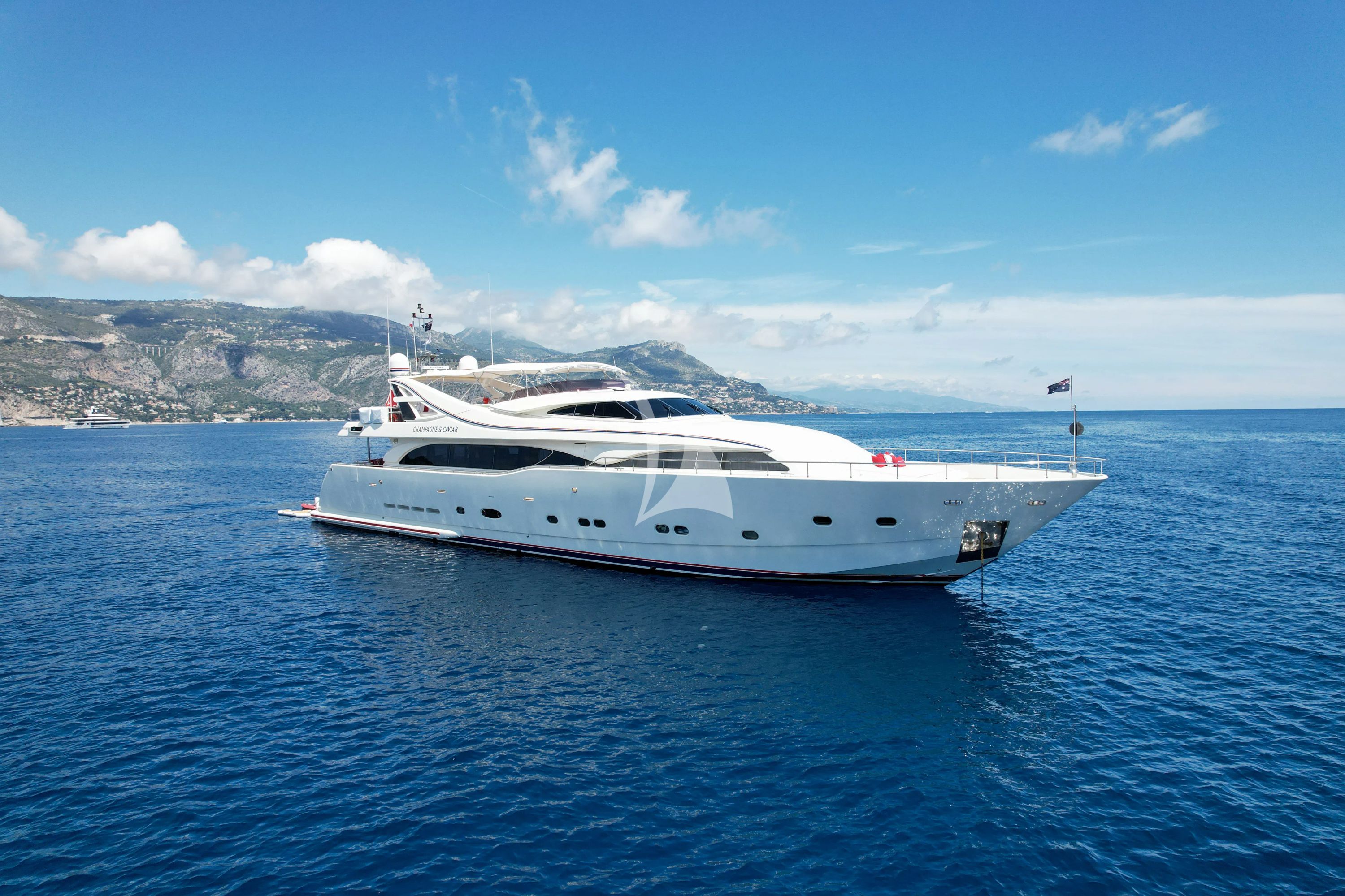 Indulge in the epitome of Mediterranean luxury aboard CHAMPAGNE AND CAVIAR, a stunning 34-meter Custom Line masterpiece that perfectly embodies her evocative name. Following a comprehensive 2024 refit, this Zuccon-designed yacht presents an impeccable blend of Italian craftsmanship and contemporary elegance, offering discerning charter guests an unparalleled yachting experience along the French and Italian Riviera. Accommodating up to 12 guests across five thoughtfully configured cabins, CHAMPAGNE AND CAVIAR features a sumptuous main deck master suite and four additional guest quarters on the lower deck, including two spacious VIP staterooms and a unique playroom perfect for children or additional guests. The yacht's impressive flybridge configuration maximizes outdoor entertainment space while advanced stabilization systems ensure exceptional comfort both underway and at anchor. Adventure enthusiasts will delight in the extensive water toys collection, featuring twin Seabobs, a standalone jet ski, comprehensive watersports equipment, and a 23-foot Antudo chase boat for exploring secluded coves and pristine beaches. Based in Ventimiglia with complimentary embarkation in Monaco, CHAMPAGNE AND CAVIAR offers seamless access to the glamorous ports of the French Riviera, Corsica, Sardinia, and Italy's magnificent coastlines. Whether seeking vibrant nightlife in Saint-Tropez, tranquil anchorages in Corsica, or the sophisticated charm of Portofino, this exceptional yacht transforms every moment into an unforgettable luxury experience.