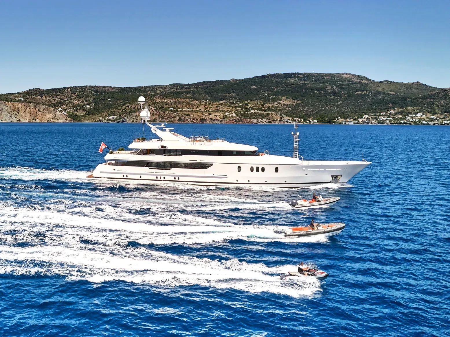 Experience the perfect blend of timeless elegance and modern luxury aboard SEAHORSE, a magnificent 53-meter Amels superyacht that sets the standard for exceptional charter experiences in the Eastern Mediterranean. Built in 1999 and meticulously refitted in 2019, this steel-hulled masterpiece showcases the refined interior design of Terence Disdale, creating sophisticated living spaces that seamlessly accommodate up to 12 guests across six thoughtfully appointed cabins. The full-beam owner's suite on the main deck offers unparalleled comfort, while two VIP staterooms on the lower deck can be converted into a luxurious suite, providing flexible accommodation options for discerning charter guests. SEAHORSE transforms every moment on the water into an adventure with her extraordinary collection of water toys and tenders. From dual Sea-Doo jet skis and premium Seabob F5S underwater scooters to an impressive array of towables, paddleboards, and wakeboarding equipment, there's something to delight every guest. The yacht's two professional tenders, including a 6.17-meter Ribeye RIB, ensure seamless shore excursions and water sports activities. Based year-round in Athens, SEAHORSE offers unrivaled access to Greece's most coveted destinations, from the cosmopolitan charm of the Cyclades to the unspoiled beauty of the Ionian Islands. With her impressive 6,800 nautical mile range, advanced stabilization systems, and Starlink connectivity ensuring seamless communication, this distinguished vessel promises an unforgettable charter experience where luxury meets adventure in the world's most enchanting cruising grounds.