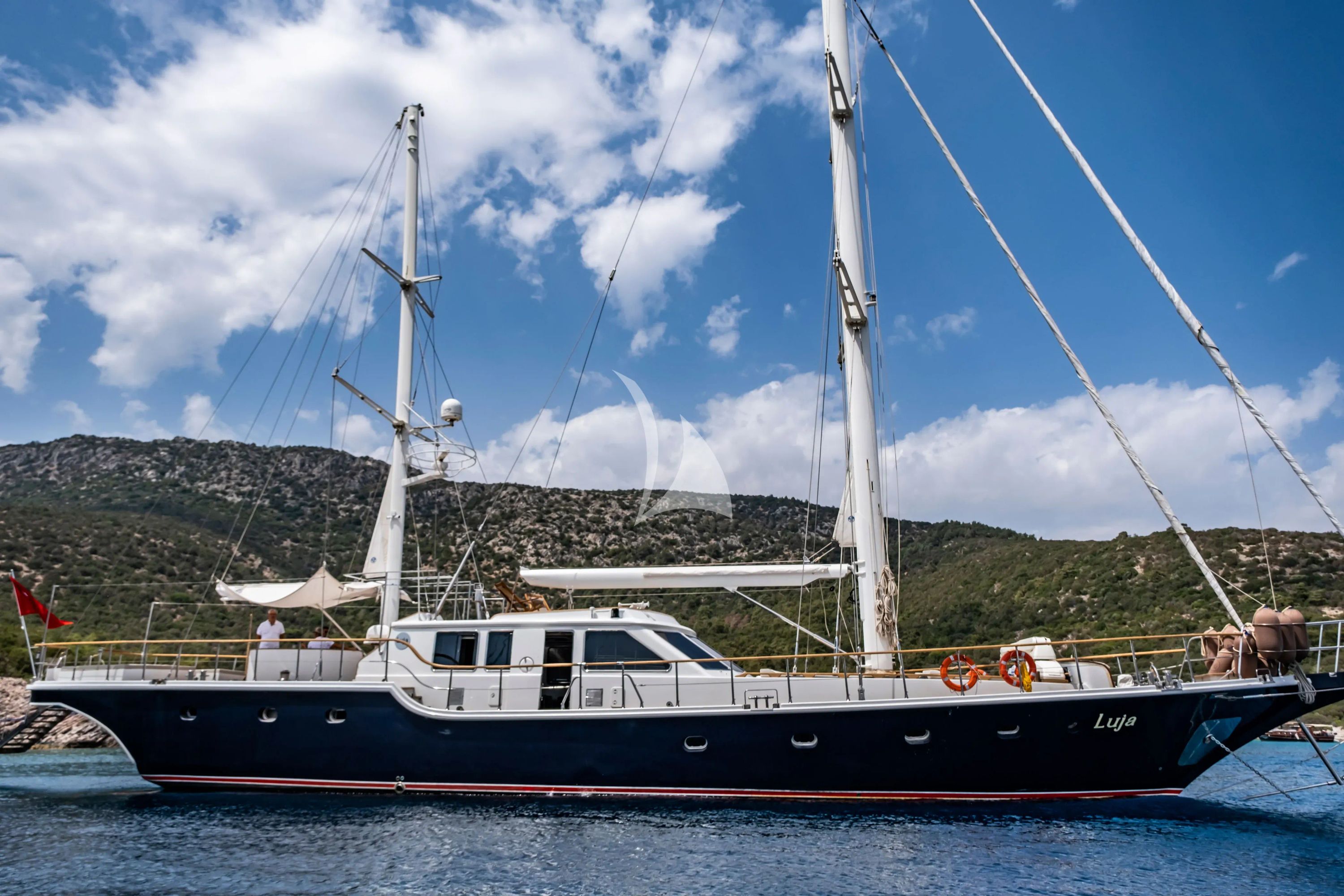 Experience the perfect harmony of sail and motor aboard LUJA, a distinguished 28.4-meter motor-sailer that seamlessly blends traditional elegance with contemporary luxury. Built in 2013 and meticulously refitted in 2022, this Turkish-flagged vessel showcases the exceptional craftsmanship of Itimat Shipyard's naval architecture paired with Alex Banakis's sophisticated interior design. Her displacement hull configuration ensures a smooth, comfortable cruise at 12 knots through the pristine waters of the Turkish Riviera and Greek islands. LUJA accommodates eight guests across four beautifully appointed cabins, featuring two master suites and two double cabins, each with private ensuite facilities. This thoughtful layout provides exceptional comfort and privacy for discerning charter guests seeking an intimate yet spacious yachting experience. The vessel's 6.5-meter beam creates generous living spaces while maintaining the sleek profile that makes her equally at home under sail or power. Based in the historic port of Bodrum, LUJA offers unparalleled access to Turkey's stunning coastline and can venture into Greek waters for those seeking to explore both cultures in a single charter. Her impressive collection of water toys ensures endless entertainment, including kayaks, canoes, paddleboards, waterskis, and a substantial 3.8-meter inflatable swimming platform with 50 HP engine. Whether you're seeking adventure on the water or relaxation in air-conditioned comfort with modern amenities like WiFi and entertainment systems, LUJA delivers an authentic Mediterranean charter experience that captures the essence of luxury yachting.
