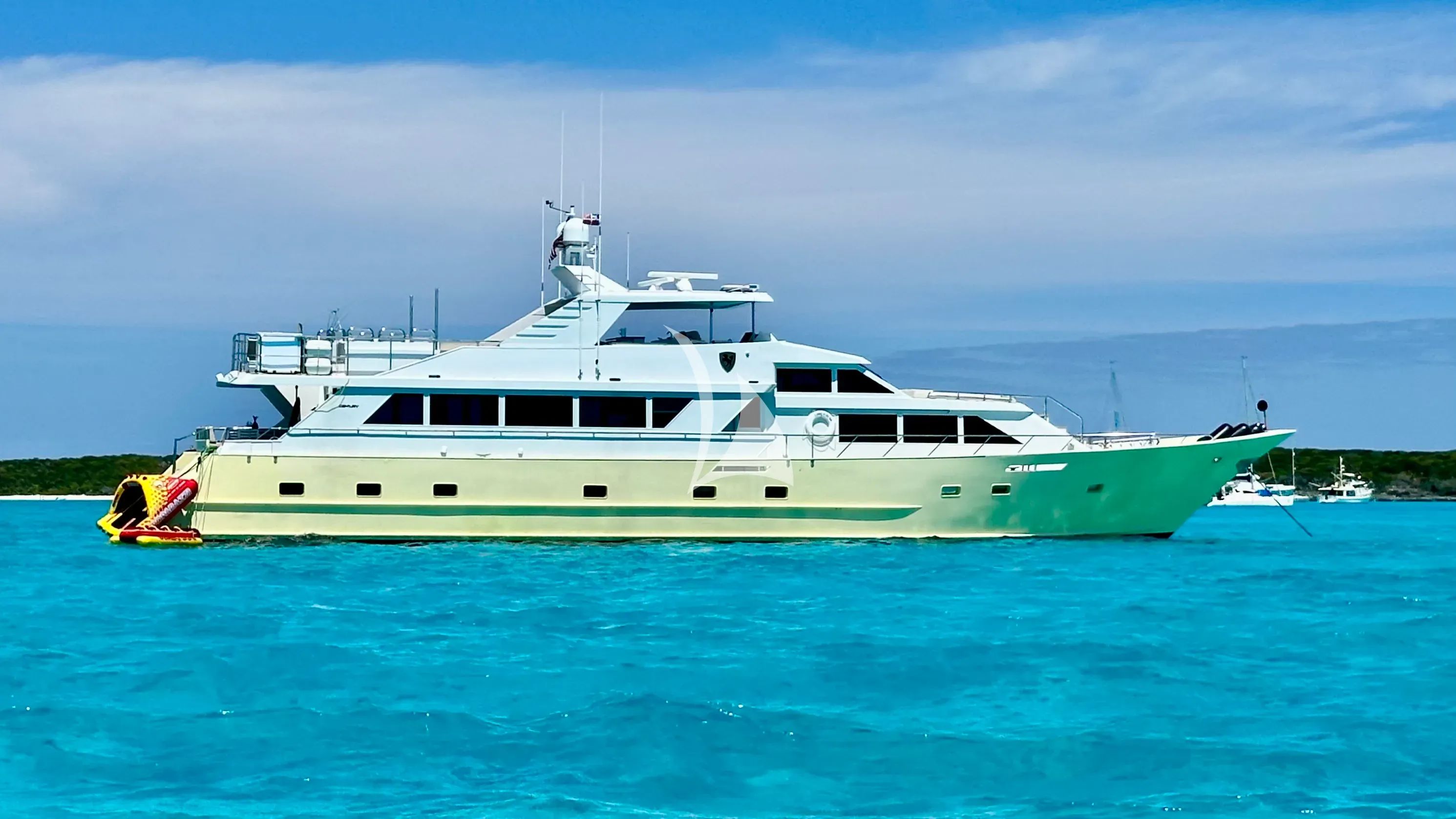A PLACE IN THE SUN emerges from her comprehensive $4 million refit as a premier charter vessel, combining classic Broward Marine craftsmanship with thoroughly modern amenities. This 100-foot motor yacht showcases the perfect balance of intimate luxury and spacious comfort, accommodating up to 10 guests across five thoughtfully appointed staterooms. The king master suite impresses with separate his and hers full bathrooms, while additional queen and twin configurations ensure flexible arrangements for families and groups of friends. Florida's pristine coastline becomes your playground aboard this US Coastwise Endorsed vessel, offering tax-free charter advantages and unlimited access to the region's most coveted destinations. The yacht's impressive array of water toys transforms every anchorage into an adventure hub—from the custom 33.4-foot tender with twin 300hp Yamahas to sea scooters, kayaks, and comprehensive fishing gear. Whether seeking adrenaline-pumping watersports or serene snorkeling expeditions, the extensive toy collection caters to every guest's desires. State-of-the-art connectivity through Starlink ensures seamless communication and entertainment throughout your voyage, while the yacht's semi-displacement aluminum hull delivers both efficiency and comfort during coastal explorations. With her raised pilot-house configuration and recent technical upgrades, A PLACE IN THE SUN represents the ideal charter platform for discerning guests seeking authentic luxury and endless possibilities along America's most beautiful waters.