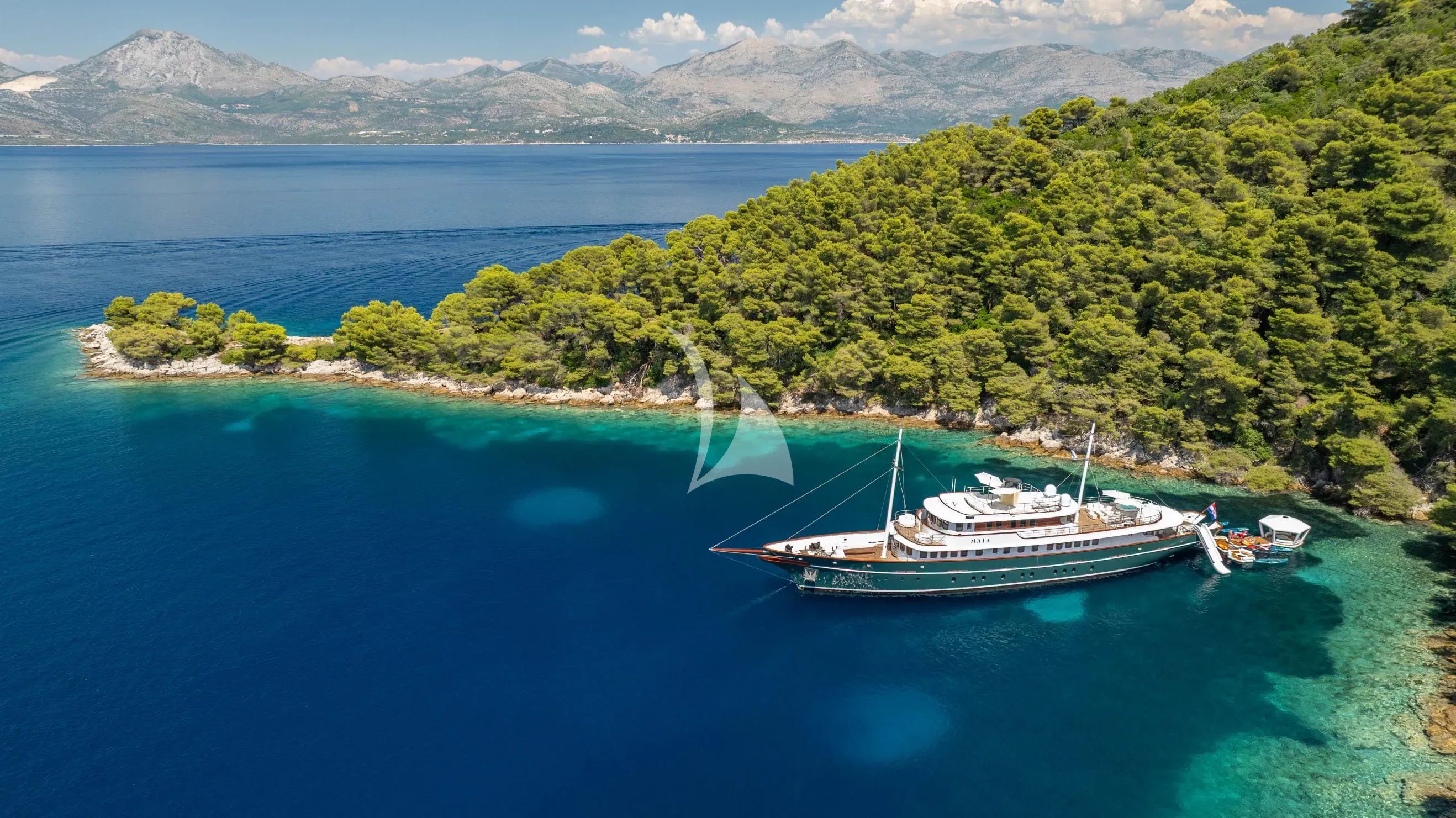 Experience the epitome of modern luxury aboard MAIA, a stunning 53-meter displacement yacht that sets new standards for charter excellence in the Mediterranean. This brand-new 2025 masterpiece, crafted by renowned naval architect Ivica Sarun and brought to life through the elegant interior vision of Anja Grubiša, offers an unparalleled charter experience for up to 12 guests across six beautifully appointed cabins. The accommodation includes a magnificent 34-square-meter master suite with king bed and lavish ensuite, complemented by spacious VIP quarters and flexible convertible cabins that adapt to your party's needs. MAIA truly excels in delivering an active luxury lifestyle, boasting an exceptional collection of water toys that transform every anchorage into your private adventure playground. From cutting-edge eFoils and Seabobs to jet skis, kayaks, and comprehensive water sports equipment, every moment on the water becomes an opportunity for excitement or relaxation. The yacht's impressive 5,700-nautical-mile range and advanced stabilization systems ensure supreme comfort whether exploring the pristine Croatian coastline, discovering Montenegro's dramatic fjords, or island-hopping through Western Greece and Southern Italy. Operating from the vibrant port of Split year-round, MAIA places you at the heart of the Mediterranean's most captivating destinations. With her tri-deck configuration providing abundant space for entertaining and relaxation, combined with modern amenities including comprehensive WiFi connectivity and climate control throughout, this exceptional yacht delivers the perfect fusion of adventure, luxury, and contemporary sophistication.