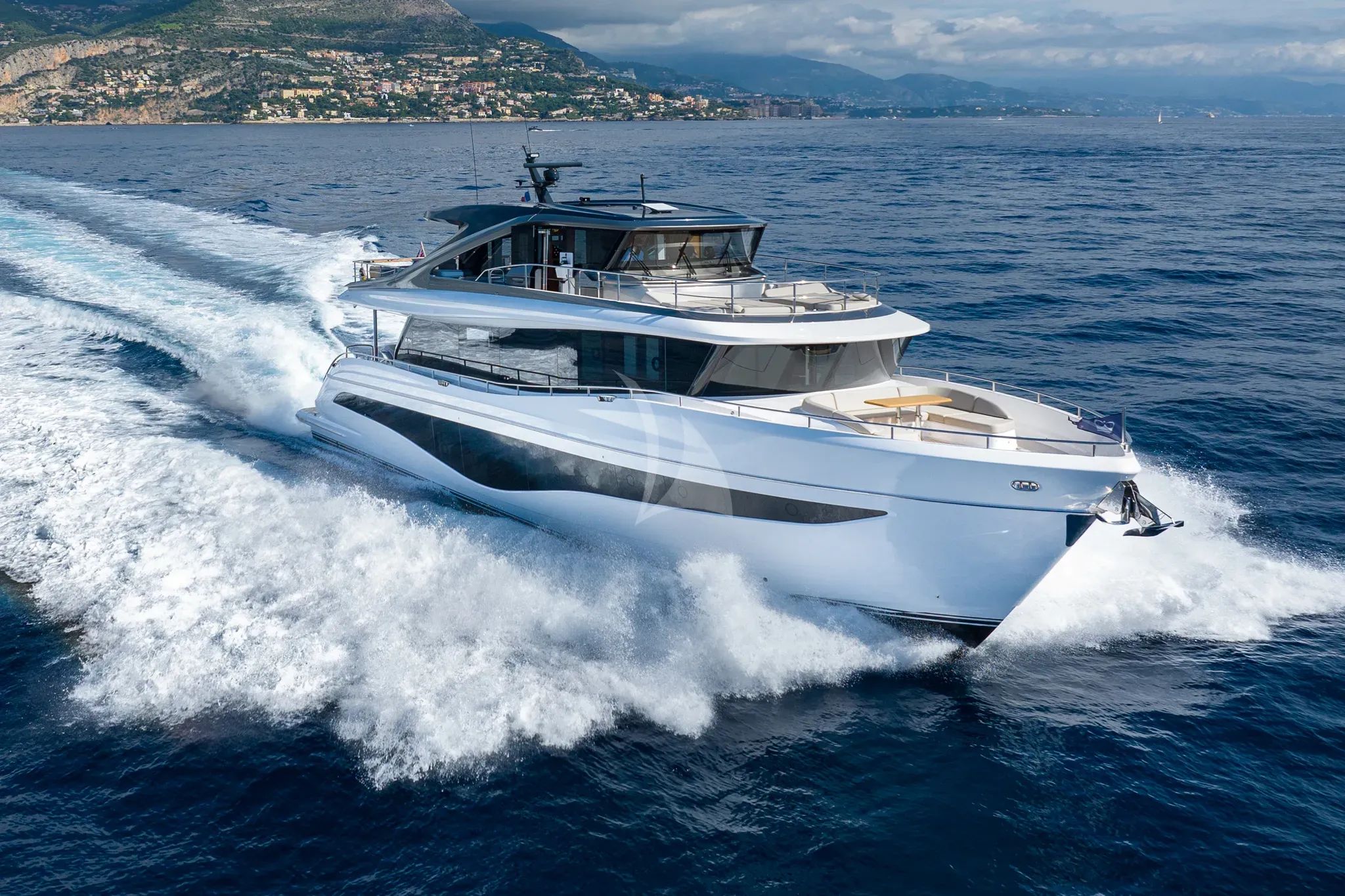 Fresh from the prestigious Princess shipyard in 2023, the 25-meter KORA represents the pinnacle of contemporary British yachting excellence. This stunning tri-deck motor yacht combines Princess's legendary craftsmanship with Bernard Olesinski's refined naval architecture, creating an exceptional charter platform that effortlessly balances performance with luxury. Her planing hull configuration delivers an impressive cruising speed of 13 knots and an exhilarating maximum of 31 knots, while advanced stabilization systems ensure supreme comfort both underway and at anchor. KORA's thoughtfully designed accommodation welcomes up to 10 overnight guests across five beautifully appointed cabins, including a master suite, two VIP staterooms, one double, and a flexible twin convertible cabin. Each sanctuary features individual climate control and entertainment systems, ensuring personalized comfort throughout the Mediterranean sojourn. The yacht's expansive beam of over six meters maximizes interior volume and deck space, creating an airy, sociable environment perfect for entertaining. The impressive array of water toys transforms every charter into an aquatic adventure. Guests can master the art of hydrofoiling with the cutting-edge E-Foil, explore underwater realms with the latest F9S Seabob, or enjoy classic water sports including wakeboarding and tubing. The inflatable swimming platform extends your connection to the sea, while the Williams tender ensures seamless shore access. Based in the glamorous port of Antibes, KORA provides year-round access to the French Riviera's most coveted destinations, from Monaco's sophistication to Saint-Tropez's vibrant energy.