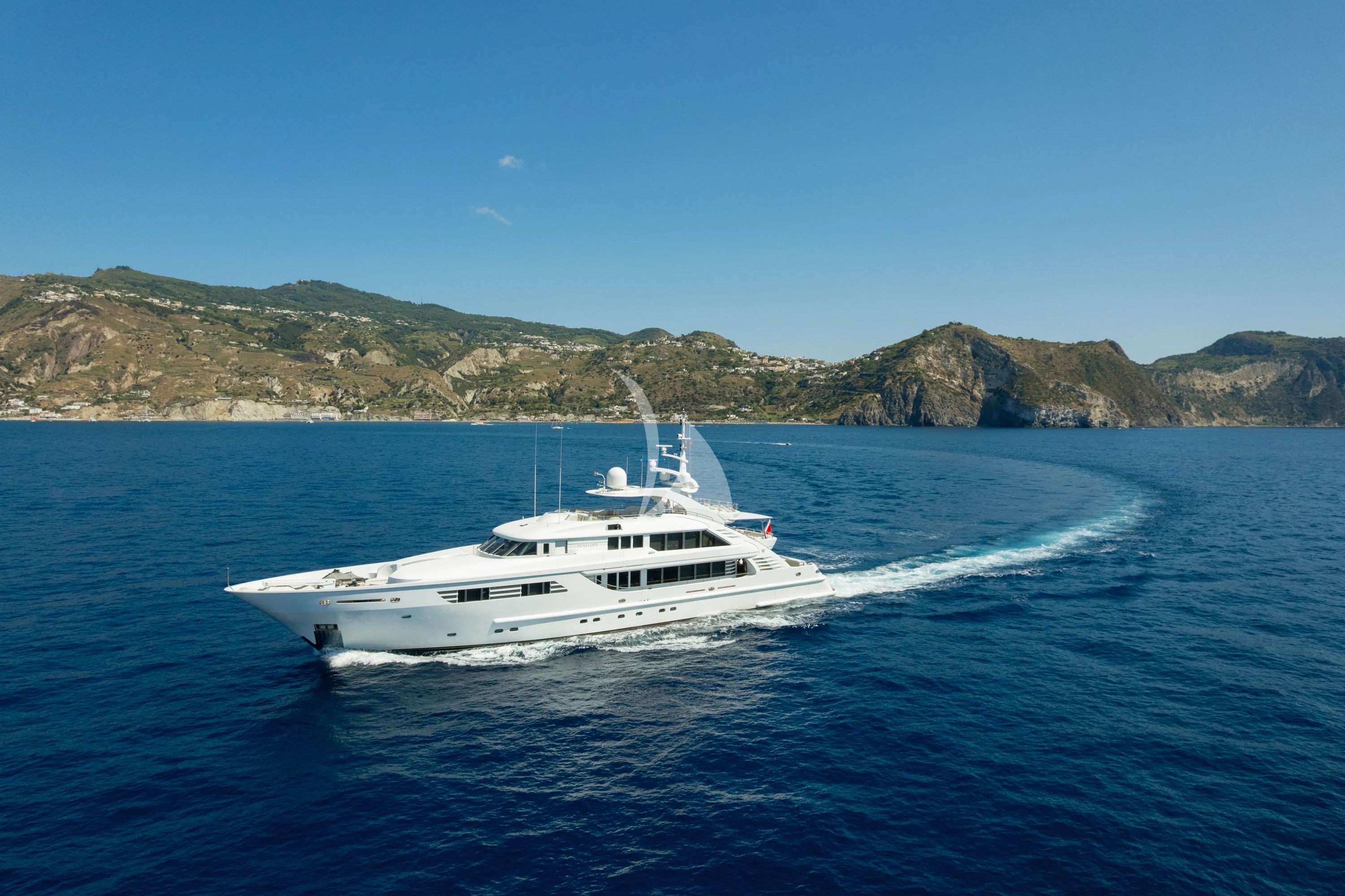 Discover the epitome of Mediterranean luxury aboard PENELOPE, a magnificent 48-meter charter yacht that perfectly balances classic elegance with contemporary sophistication. Built by International Shipyard Ancona and featuring naval architecture by Walter Franchini, this steel-hulled displacement yacht has been meticulously maintained and recently underwent a comprehensive refit in 2025, including interior restyling by renowned designer Cristiano Gatto and complete engine overhauls. PENELOPE accommodates up to 12 guests across six beautifully appointed cabins, including a spectacular full-beam owner's suite on the main deck with dual ensuite bathrooms and a separate office area. The lower deck features symmetrical double cabins and twin cabins, plus a VIP suite, all with private ensuites. Her tri-deck configuration provides exceptional space for relaxation and entertainment, enhanced by advanced stabilization systems for ultimate comfort both underway and at anchor. The yacht's impressive collection of water toys transforms any charter into an adventure playground, featuring twin jet skis, Seabobs, SUPs, a floating yacht pool, and professional-grade water sports equipment. Based in the stunning Castellammare di Stabia near Naples, PENELOPE offers unparalleled access to the Italian Riviera's crown jewels – from the glamorous island of Capri to the dramatic Amalfi Coast, with the historic wonders of Pompeii and Mount Vesuvius as your dramatic backdrop. With her 4,000-nautical-mile range and modern amenities including Starlink connectivity, PENELOPE delivers an unforgettable luxury charter experience.