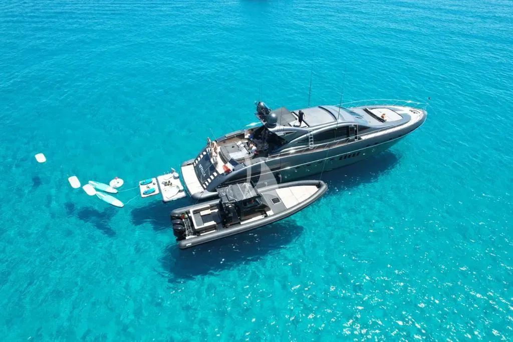 Experience the exhilarating spirit of Mediterranean cruising aboard Revella, a magnificent 28-meter Mangusta that seamlessly blends Italian performance with refined luxury. Built by the renowned Overmarine shipyard, this striking motor yacht delivers an impressive cruising speed of 23 knots, ensuring swift passage between the glamorous ports of the French Riviera while maintaining the highest standards of comfort and style. Revella's thoughtfully designed interior accommodates up to eight guests across four beautifully appointed ensuite cabins, including a master suite, VIP stateroom, and two flexible twin cabins. The yacht's planing hull configuration and composite construction provide exceptional stability and performance, while the open superstructure design maximizes natural light and creates seamless indoor-outdoor living spaces perfect for sophisticated entertaining. Based in the prestigious marina of Les Marines de Cogolin, Revella offers privileged access to the French Riviera's most coveted destinations. The yacht comes equipped with an impressive array of water toys including Seabobs, paddleboards, wakeboard, and comprehensive snorkeling equipment, ensuring endless aquatic adventures. For the ultimate charter experience, guests can enhance their journey with an optional chase boat package featuring additional Seabobs, cutting-edge Fliteboards, and Jet Pods Pro, transforming every anchorage into a private water sports paradise along the stunning Mediterranean coastline.