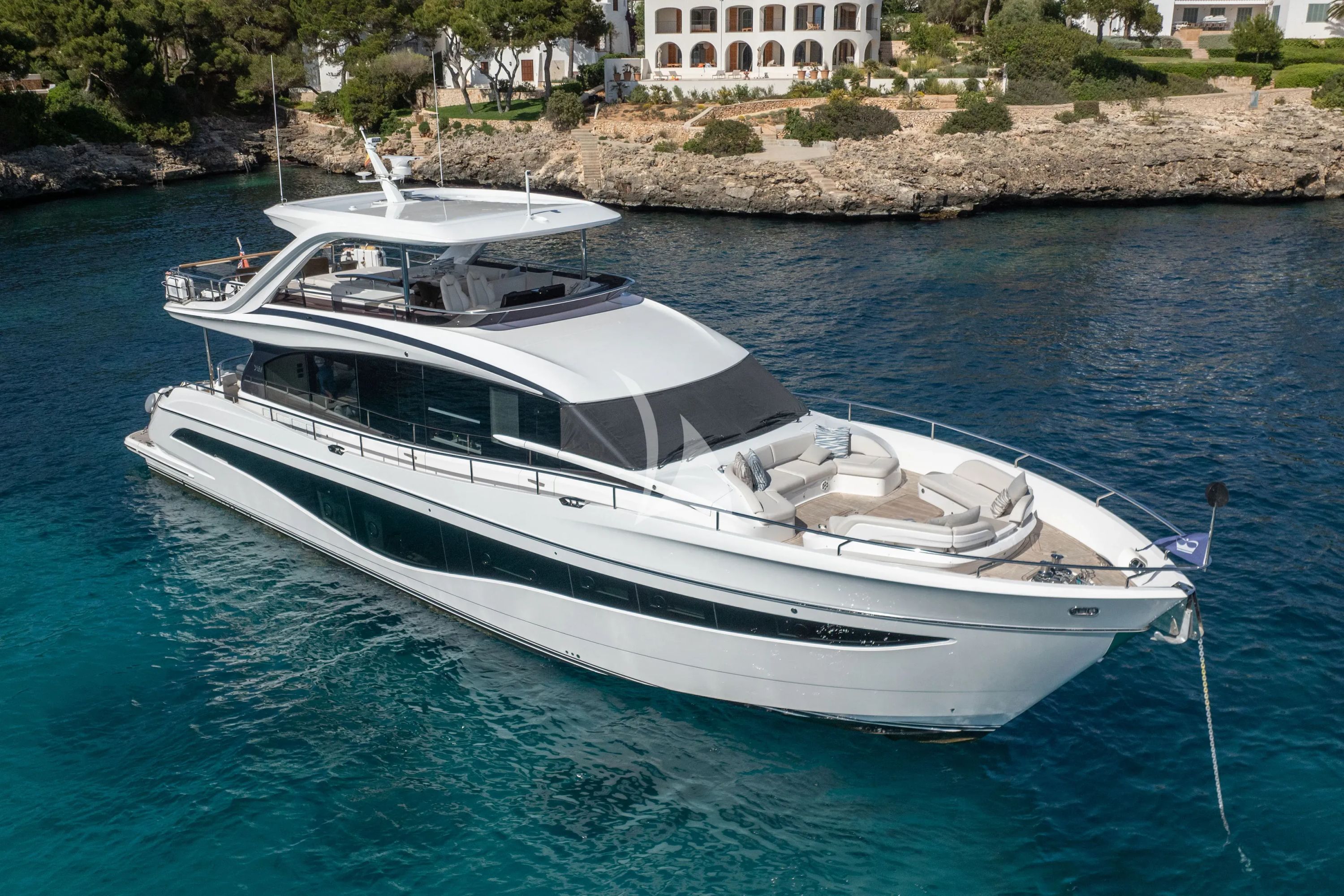 Experience the pinnacle of modern yachting excellence aboard LUMI, a stunning 2023 Princess flagship that redefines luxury charter in the Balearics. This impeccably crafted 25.5-meter flybridge yacht combines cutting-edge British engineering with sophisticated design, delivering exceptional performance at 32 knots maximum speed while maintaining remarkable efficiency across her 300-nautical-mile range. LUMI's thoughtfully designed accommodation welcomes up to eight guests across four beautifully appointed cabins, including a sumptuous master suite positioned midships for optimal comfort, an elegant VIP forward cabin, and two additional guest cabins with flexible twin-to-double configurations. Every space features individual climate control and entertainment systems, while the yacht's advanced stabilization ensures serene relaxation at anchor. From her prestigious Club De Mar base in Mallorca, LUMI opens the door to the Mediterranean's most coveted destinations across Mallorca, Menorca, and Ibiza. Her extensive collection of premium water toys transforms every charter into an aquatic playground – two Sea Bobs for underwater exploration, stand-up paddleboards for sunrise adventures, wakeboarding and waterskiing equipment, plus a versatile Williams Sportjet tender for seamless shore excursions. Whether seeking adrenaline-fueled water sports or tranquil moments beneath the Mediterranean sun, LUMI delivers an unparalleled charter experience that exemplifies the very best of contemporary luxury yachting.