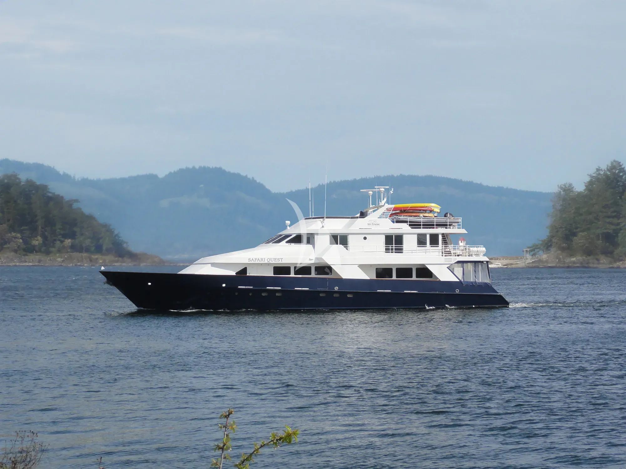 Discover the pristine wilderness of Alaska and the Pacific Northwest aboard Safari Quest, a purpose-built expedition yacht that redefines adventure cruising. This robust 120-foot steel vessel, expertly refitted in 2013, accommodates up to 22 guests across 11 thoughtfully appointed cabins, making her ideal for intimate group charters and multi-generational family adventures. Four spacious Bridge deck suites feature private balconies, while all accommodations boast ensuite facilities and comfortable configurations ranging from singles to kings. Safari Quest transforms remote exploration into luxurious discovery with her impressive array of expedition equipment. Two expedition skiffs ferry guests to hidden coves and wildlife viewing locations, while eight tandem kayaks and three stand-up paddleboards provide intimate access to secluded waterways. After days spent exploring glacial fjords or spotting whales, guests can rejuvenate in the top-deck hot tub or oceanfront sauna, or maintain their fitness routine with onboard gym equipment and yoga facilities. Operating year-round between Juneau's summer Alaska season and Seattle's winter Pacific Northwest adventures, Safari Quest offers seven-night expeditions that showcase nature's most spectacular theaters. Her shallow 6.4-foot draft grants access to pristine locations larger yachts cannot reach, while her displacement hull ensures comfortable cruising through these legendary waters. This is expedition yachting at its finest—where luxury meets authentic wilderness exploration.
