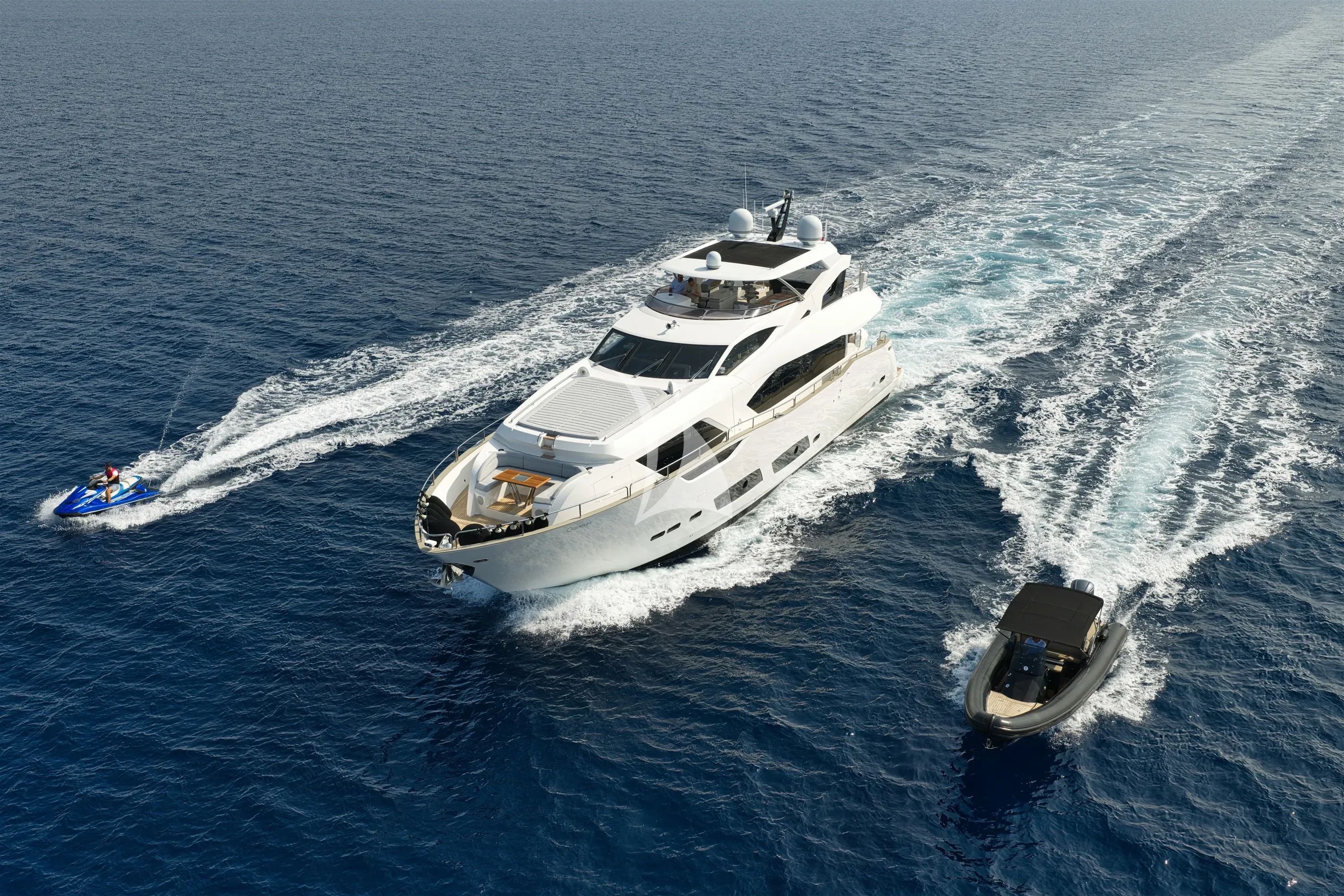 Experience the pinnacle of French Riviera luxury aboard QUANTUM, a magnificent 28.41-meter Peri Yachts masterpiece that seamlessly blends contemporary elegance with exceptional performance. Following her comprehensive 2022 refit, this stunning semi-displacement yacht showcases the finest in modern yacht design, featuring state-of-the-art Humphree stabilizers that ensure unparalleled comfort both underway and at anchor along the glamorous Mediterranean coastline. QUANTUM's sophisticated accommodations include four beautifully appointed double cabins, each with ensuite facilities, comfortably hosting up to eight guests overnight. The master and VIP suites are generously proportioned and equally luxurious, offering flexibility for discerning charter groups. Her impressive flybridge configuration and expertly crafted interiors by Scaro Design create the perfect setting for both intimate gatherings and spectacular entertaining, with capacity for up to 32 guests at anchor or 52 for dockside events. Based year-round in the prestigious Vieux Port de Cannes, QUANTUM provides effortless access to the French Riviera's most coveted destinations, from Monaco's glittering harbor to Saint-Tropez's legendary beaches. Her extensive collection of premium water toys, including dual Seabobs, sea scooters, paddleboards, and comprehensive watersports equipment, ensures every moment on the water is filled with adventure and excitement. With her impressive 21-knot top speed and refined cruising capabilities, QUANTUM transforms every charter into an unforgettable Mediterranean odyssey.
