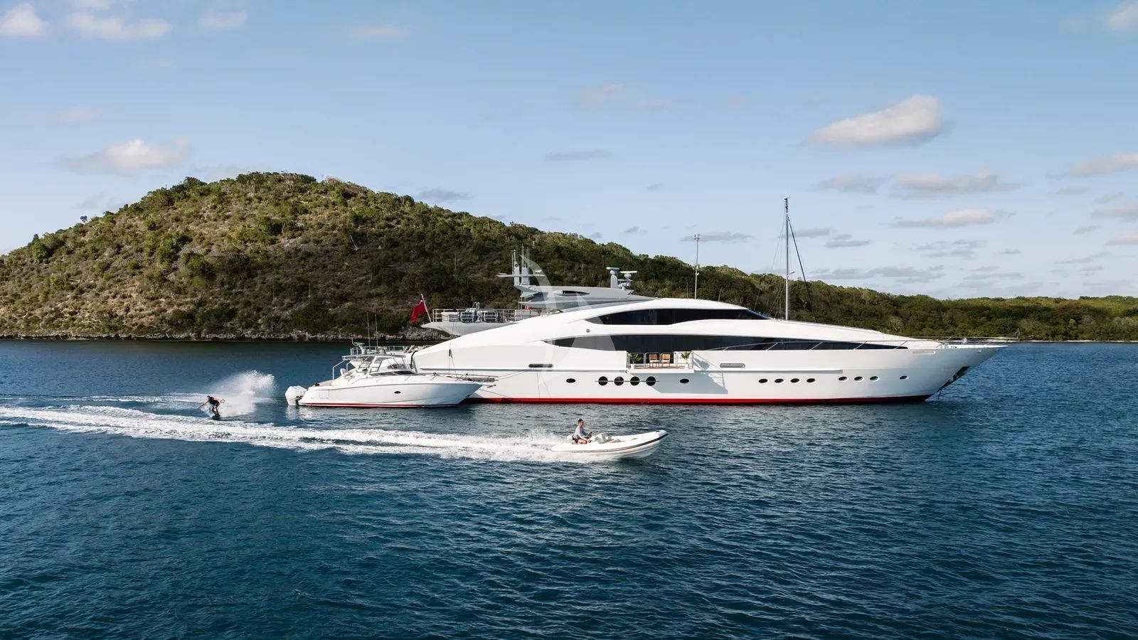 NORMA JEAN represents the pinnacle of Palmer Johnson's craftsmanship, combining sleek aluminium construction with the sophisticated interior design expertise of Nuvolari Lenard. This magnificent 45.7-meter semi-displacement yacht, fresh from her comprehensive 2024 refit, offers an unparalleled charter experience throughout the Caribbean and Bahamas. Her impressive 27-knot maximum speed and 3,000-nautical-mile range ensure effortless exploration of pristine destinations, while her shallow 1.77-meter draft opens access to secluded anchorages unavailable to larger vessels. Accommodating up to 10 guests across five beautifully appointed cabins, NORMA JEAN features a spectacular full-beam primary suite on the main deck, complete with study, lounge area, and dual ensuite bathrooms. Four additional guest cabins on the lower deck provide luxurious comfort with king, queen, and twin configurations. The yacht's entertainment capabilities are equally impressive, featuring outdoor cinema, comprehensive 4/5G Starlink connectivity, and stabilizers for supreme comfort both underway and at anchor. Adventure enthusiasts will appreciate NORMA JEAN's exceptional toy collection, including the latest Fliteboard eFoil, SeaBobs, Sea-Doo Sparks, and a fully-equipped 37-foot Sunseeker chase boat. The innovative Aquabana floating platform creates an exclusive private beach club experience, while professional fishing gear and comprehensive watersports equipment ensure every guest finds their perfect aquatic pursuit. Based in Nassau during summer months and Sint Maarten for winter, NORMA JEAN delivers unforgettable luxury yacht charter experiences across the region's most coveted destinations.