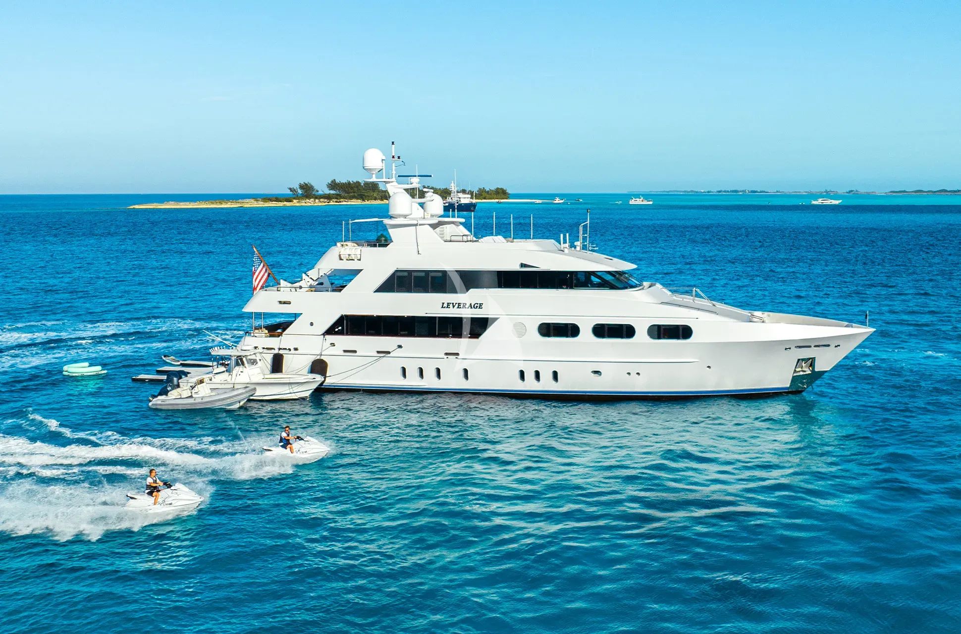 Experience the perfect fusion of American craftsmanship and contemporary luxury aboard LEVERAGE, a stunning 125-foot Palmer Johnson masterpiece. Fresh from an extensive 2023 refit, this tri-deck superyacht showcases impeccable design by acclaimed interior designer Tricia Refer, creating sophisticated spaces that seamlessly blend comfort with cutting-edge style. Her semi-displacement aluminum hull delivers exceptional performance, cruising effortlessly at 12 knots with an impressive 3,000-nautical-mile range to explore distant horizons. LEVERAGE accommodates up to 10 guests across five exquisitely appointed staterooms, including a magnificent full-beam master suite featuring a private office, his-and-hers ensuite with jacuzzi tub, and steam shower. The yacht's crown jewel is her extraordinary collection of water toys, anchored by a remarkable 39-foot HCB tender purpose-built for luxury fishing excursions, complemented by two brand-new Yamaha WaveRunners, SeaBobs, an inflatable BOTE dock with Bluetooth speakers, multiple kayaks, SUPs, and professional snorkeling equipment with underwater cameras. Dividing her time between the sophisticated waters of Newport, Rhode Island during summer months and the crystal-clear Paradise of Nassau, Bahamas in winter, LEVERAGE offers the ultimate charter experience across two distinctly captivating destinations. With advanced stabilization systems, comprehensive entertainment packages including Starlink connectivity, and a deck jacuzzi for evening relaxation, she delivers an unparalleled luxury charter experience that exceeds the expectations of the most discerning guests.