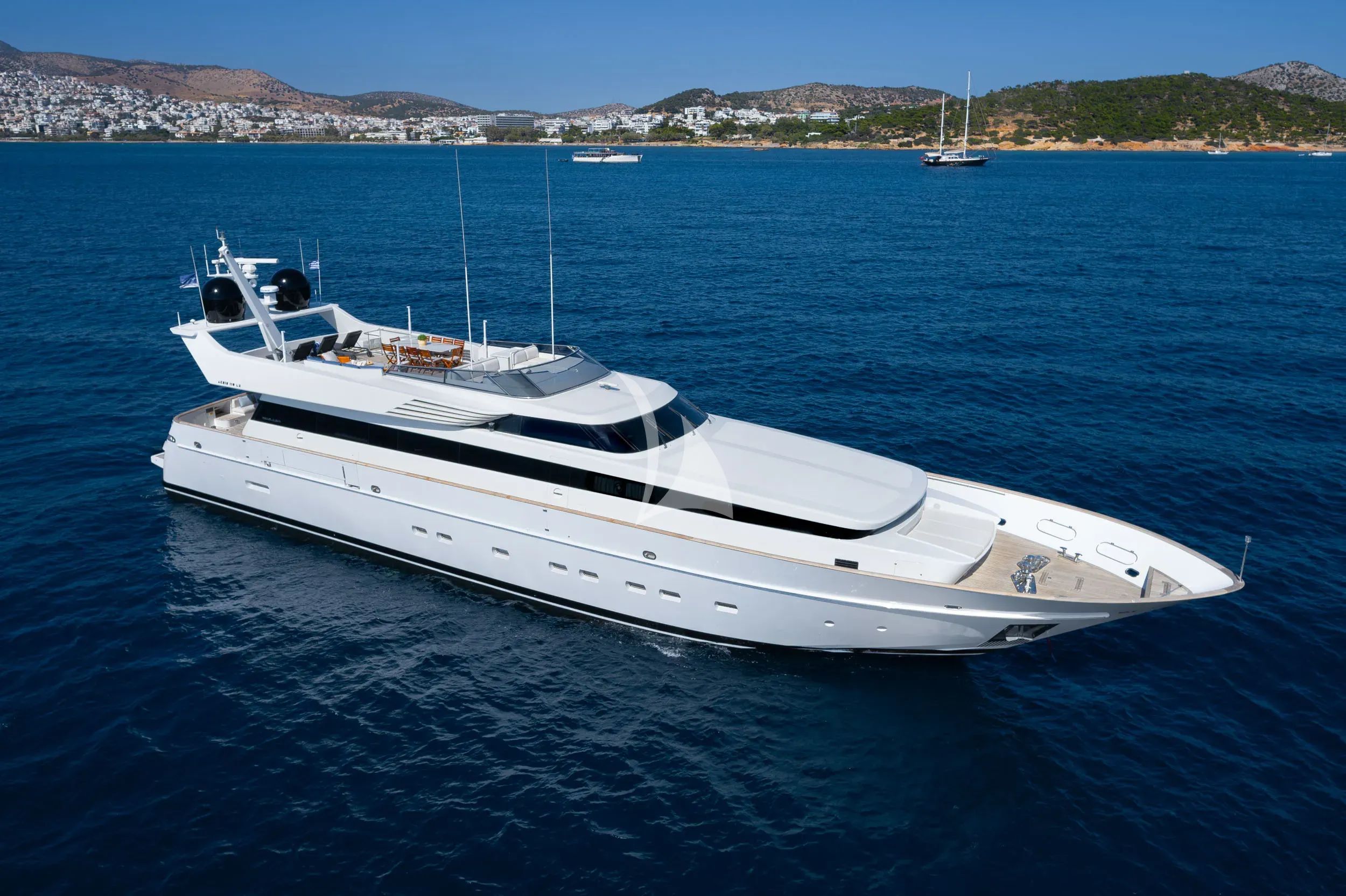Discover the epitome of Mediterranean luxury aboard ENERGY, a magnificent 33.6-meter Cantieri di Pisa masterpiece that seamlessly blends Italian craftsmanship with contemporary elegance. Following her comprehensive 2024 refit, this sophisticated displacement yacht offers discerning charter guests an unparalleled experience exploring the enchanting Greek islands from her Athens base. ENERGY's thoughtfully designed layout accommodates up to 12 guests across five beautifully appointed cabins, including a luxurious owner's suite and VIP stateroom, each featuring king-size beds and modern amenities. The recent upgrades include an elegant new salon floor, enhanced hotel equipment, and state-of-the-art Crestron sound systems, ensuring every detail meets the highest standards of luxury charter expectations. Adventure enthusiasts will delight in ENERGY's extensive collection of water toys, featuring a thrilling waterslide, Seabob underwater scooter, Yamaha jet ski, paddleboards, and comprehensive watersports equipment including wakeboards, water skis, and towables for guests of all ages. Her impressive 18-knot cruising speed and advanced stabilization systems ensure smooth, comfortable passages between the crystal-clear waters of the Aegean islands. With modern connectivity including 4/5G internet and comprehensive entertainment systems throughout, ENERGY delivers the perfect balance of exhilarating water-based adventures and sophisticated onboard luxury for an unforgettable Greek island charter experience.