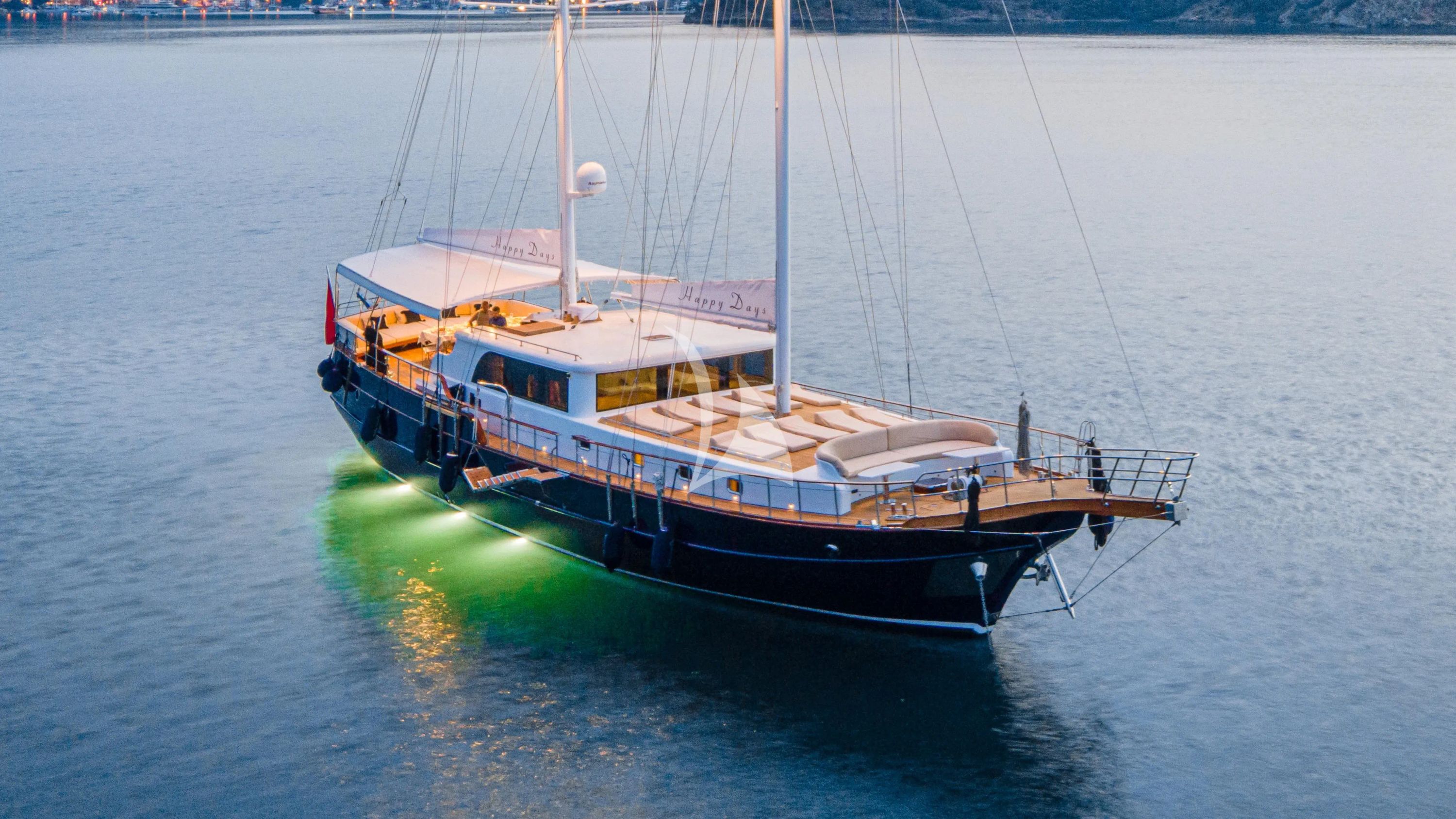 Discover the perfect blend of traditional craftsmanship and modern luxury aboard HAPPY DAYS, a stunning 30-meter gulet that epitomizes the timeless elegance of Turkish yacht building. Built in 2011 and meticulously refitted in 2021, this exceptional vessel features a distinctive laminated cold-molded wood hull that delivers both classic beauty and superior seaworthy performance. With her impressive beam of 6.9 meters, HAPPY DAYS offers remarkably spacious living areas that comfortably accommodate up to 10 guests across five beautifully appointed cabins. The yacht's thoughtfully designed accommodation includes three double cabins and two twin cabins, each featuring private bathrooms, air conditioning, and safety boxes for complete comfort and security. The generous saloon serves as the heart of onboard entertainment, featuring a welcoming bar and comfortable seating for all guests, while individual televisions in every cabin ensure private relaxation options. From her summer base in Göcek to winter operations in Fethiye, HAPPY DAYS offers the unique opportunity to explore both the stunning Turkish Riviera and venture into Greek island waters. Adventure enthusiasts will appreciate the yacht's comprehensive collection of water toys, including kayaks, canoes, paddleboards, wakeboards, water skis for both adults and children, and towable inflatables. The powerful 6.8-meter tender ensures seamless shore excursions, while snorkeling and fishing equipment open up endless possibilities for underwater exploration. With reliable WiFi connectivity and full air conditioning throughout, HAPPY DAYS delivers an ideal charter experience combining authentic gulet charm with contemporary amenities.