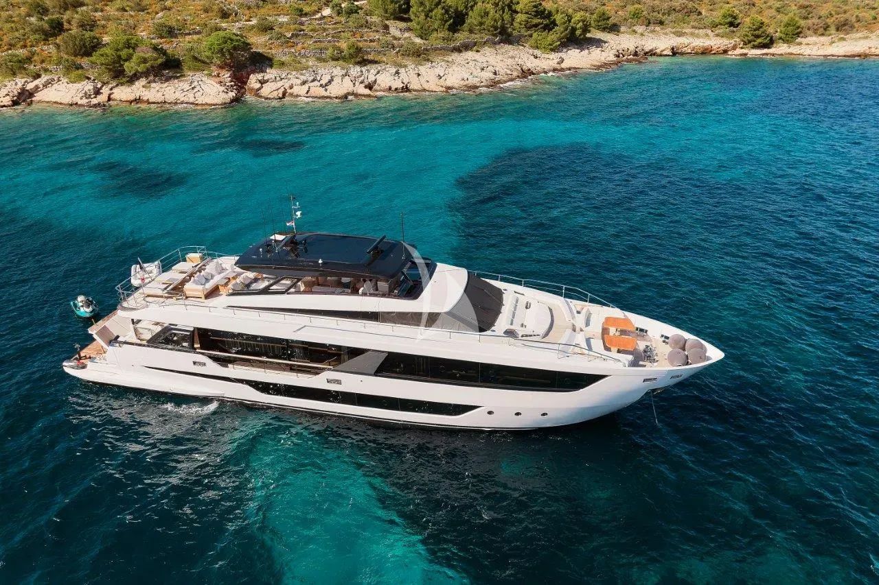 Introducing B.A.13, a stunning 30-meter Ferretti masterpiece that exemplifies Italian craftsmanship and contemporary luxury. This brand-new 2024 flybridge yacht represents the pinnacle of modern yacht design, featuring naval architecture by Ferretti's renowned engineering team in collaboration with Filippo Salvetti, while Ideaitalia's sophisticated interior styling creates an atmosphere of refined elegance throughout. Accommodating up to eight guests across five beautifully appointed ensuite cabins, B.A.13 offers the perfect blend of comfort and performance. The spacious master suite on the main deck provides panoramic views and a lavish ensuite, while the lower deck houses three additional double cabins and one flexible twin/double cabin. With her impressive 28-knot maximum speed and efficient 22-knot cruising capability, she delivers exhilarating performance alongside exceptional stability from her advanced stabilization systems. Adventure seekers will delight in B.A.13's extraordinary water sports collection, featuring dual SEABOB underwater scooters, an innovative eFoil Lift, comprehensive wakeboarding and waterskiing equipment for all ages, and dual paddleboards. The Williams SportJet tender and SeaDoo jet ski ensure effortless exploration of secluded coves along the French Riviera. Based year-round in glamorous Antibes, this exceptional yacht provides the ideal platform for discovering the Mediterranean's most exclusive destinations, from the glittering lights of Monaco to the pristine beaches of the Balearics. B.A.13 promises an unforgettable charter experience where cutting-edge technology meets timeless luxury.