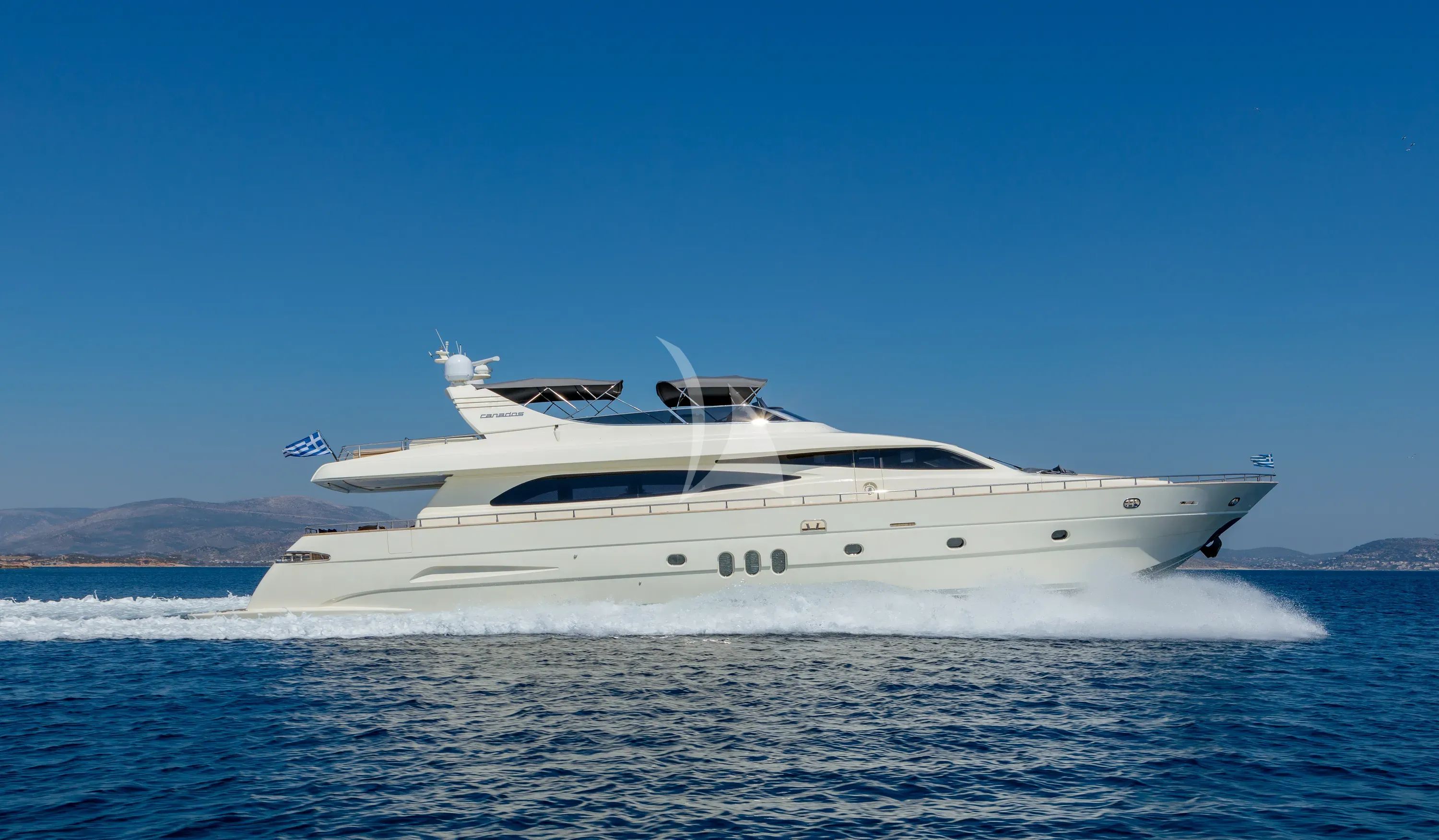 Discover the perfect harmony of Italian craftsmanship and Mediterranean elegance aboard MIRAVAL, a stunning 26.5-meter Canados motor yacht that exemplifies sophisticated charter living. Fresh from her comprehensive 2025 refit featuring luxurious new interiors by renowned Salvagni Architetti, this impeccably maintained vessel offers an intimate yet spacious platform for exploring Greece's legendary waters with up to 10 guests. MIRAVAL's thoughtfully designed accommodation includes a master suite, VIP cabin, and two twin cabins with pullman berths, all featuring en-suite facilities for ultimate privacy and comfort. Her impressive planing hull delivers exhilarating performance with cruising speeds of 21 knots and a thrilling maximum of 29 knots, while her flybridge configuration maximizes both indoor and outdoor living spaces perfect for Mediterranean entertaining. The yacht's exceptional water sports arsenal transforms every anchorage into an aquatic playground, featuring a SeaDoo jet ski, Seabob F5S, comprehensive wakeboarding and water skiing equipment, paddleboards, and an impressive selection of inflatables and toys. Based in Athens with flexibility to embark from the enchanting Ionian islands of Zakynthos or Lefkada, MIRAVAL provides seamless access to Greece's most coveted destinations – from the cosmopolitan Cyclades to the pristine beaches of the Ionians. Modern amenities including 4/5G internet, comprehensive entertainment systems, and full air conditioning ensure contemporary luxury throughout your Greek odyssey.