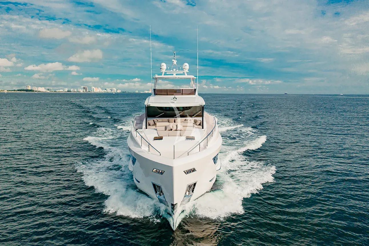 Step aboard Sea-Renity, a stunning 2023 Horizon flybridge motor yacht that redefines luxury charter experiences in the pristine waters of the Bahamas. At just over 100 feet, this contemporary masterpiece showcases the finest in modern yacht design, featuring elegant interiors by JAC Design that seamlessly blend sophistication with relaxed island living. Accommodating up to 10 guests across five beautifully appointed staterooms, including a sumptuous master suite with king bed and private ensuite, Sea-Renity offers the perfect sanctuary for discerning travelers seeking both comfort and adventure. What truly sets Sea-Renity apart is her exceptional array of water toys and amenities, transforming every charter into an aquatic playground. The impressive collection includes a 33-foot Boston Whaler tender with twin Mercury 350hp engines, dual Sea-Doo jet skis, two Seabobs for underwater exploration, and comprehensive snorkeling gear for discovering the Bahamas' legendary coral reefs. Adventure enthusiasts will delight in the wakeboard, paddleboards, and towable toys, while those seeking relaxation can enjoy the yacht's yoga equipment or unwind with the beach setup featuring BBQ facilities. Enhanced by advanced stabilization systems for ultimate comfort both underway and at anchor, plus comprehensive entertainment systems including Starlink connectivity, Sea-Renity ensures every moment aboard exceeds expectations. Her efficient semi-displacement hull delivers smooth cruising at 13 knots with an impressive 835-nautical-mile range, making her ideally suited for exploring the Bahamas' countless pristine cays and secluded anchorages.