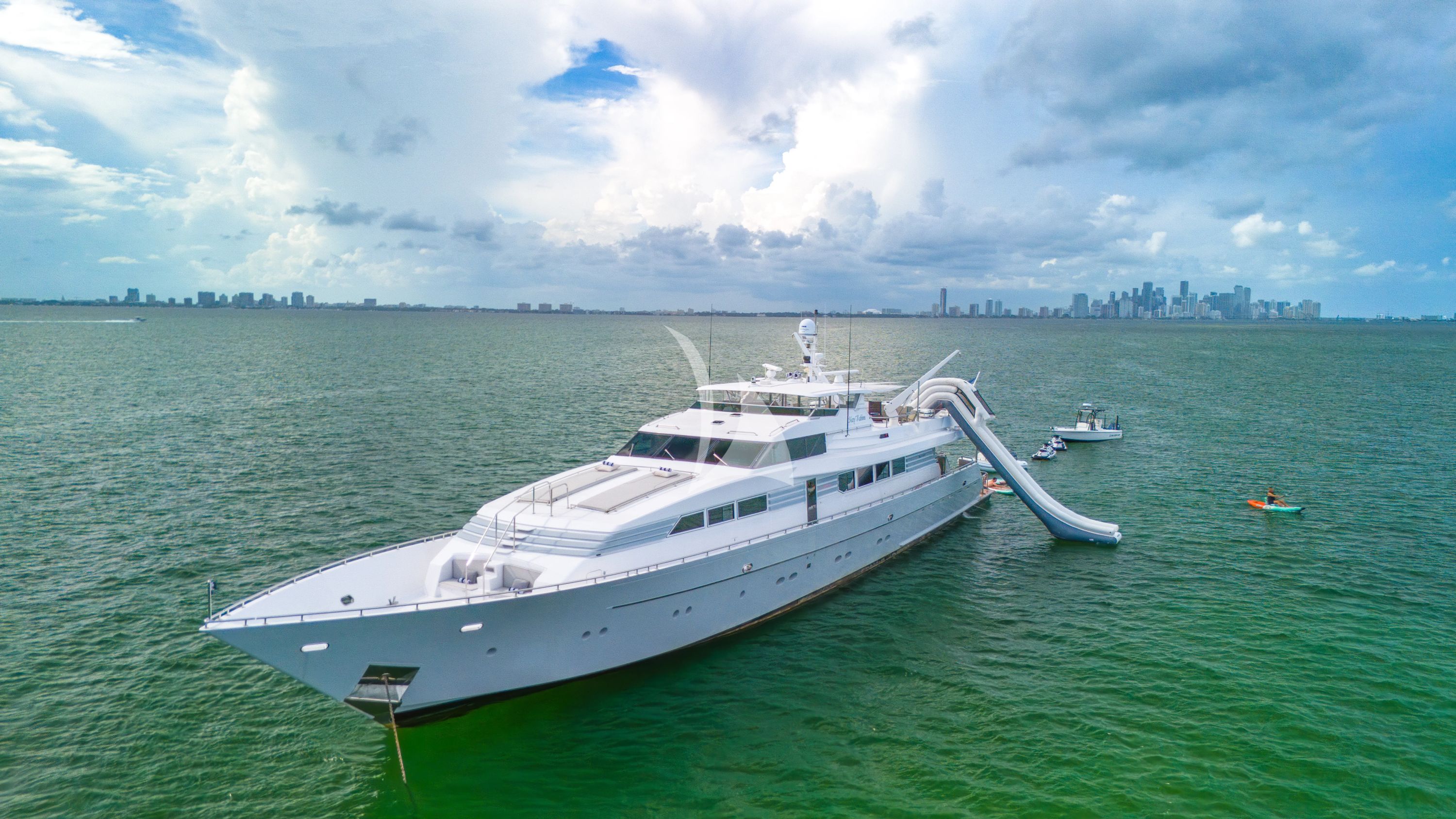 Experience the ultimate Florida and Bahamas charter adventure aboard MARY KATHLENE, a beautifully maintained 139-foot Westport that seamlessly blends classic American yachting with contemporary luxury. Following her comprehensive 2023 refit featuring fresh exterior paint, new decking, and updated soft goods, this semi-displacement yacht presents in pristine condition while retaining the timeless elegance of Jack Sarin's thoughtful design. MARY KATHLENE accommodates up to eight guests across four well-appointed suites, including three doubles and one twin cabin, each featuring individual climate control and entertainment systems. Her impressive 14-knot cruising speed and 2,000-nautical-mile range open endless possibilities for exploring the crystal-clear waters between Florida's coast and the Bahamas' secluded cays. The yacht's exceptional water sports program sets her apart, featuring dual 2024 Yamaha wave runners with Bluetooth connectivity, multiple kayaks and paddleboards, a dramatic flybridge slide, and comprehensive diving equipment including a Brownie hookah system. The crown jewel is the optional 68-foot Hatteras sportfishing yacht with additional guest accommodations, perfect for serious anglers or expanding your charter group. With advanced amenities including Starlink high-speed internet, comprehensive entertainment systems throughout, and stabilizers for comfortable cruising, MARY KATHLENE delivers an uncompromising charter experience in America's premier yachting destinations.