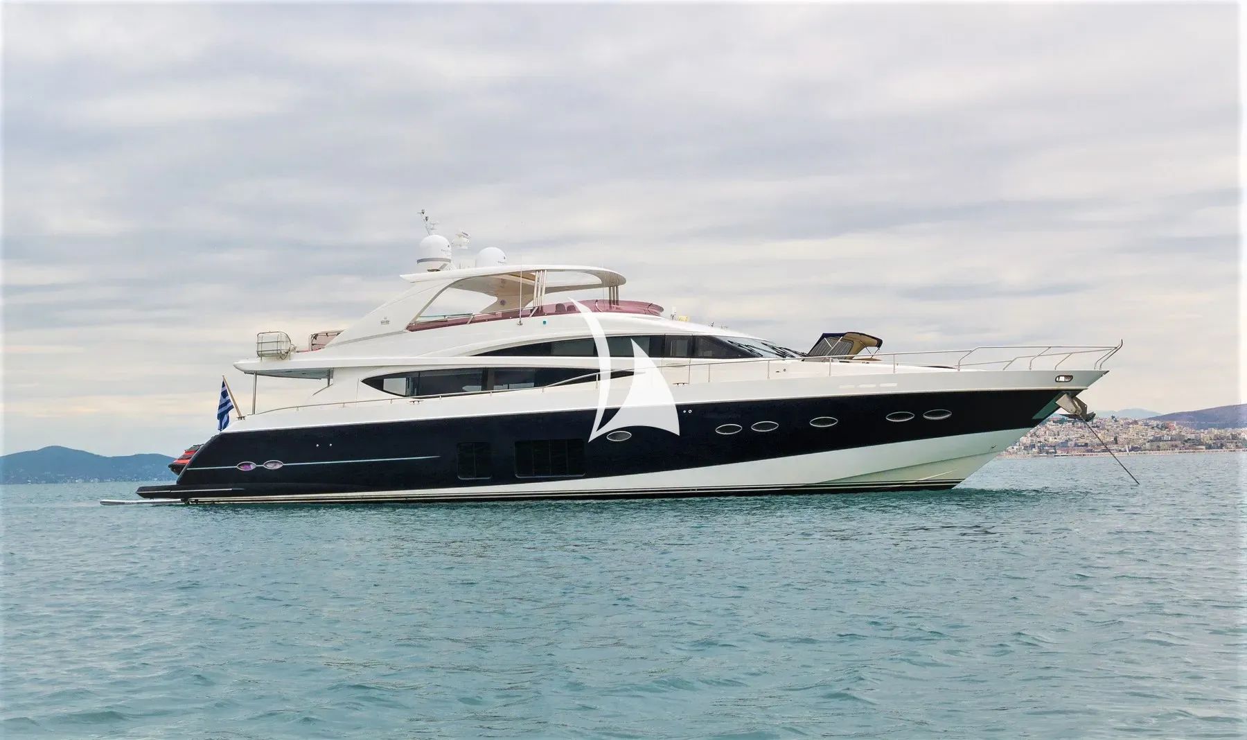 Discover the perfect blend of Princess Yachts' renowned craftsmanship and contemporary luxury aboard 4LIFE, a stunning 26-meter motor yacht that promises an unforgettable Greek island adventure. Fresh from her comprehensive 2025 refit, this impeccably maintained vessel showcases refreshed interiors and enhanced outdoor living spaces, including new bow sunbeds and redesigned deck cushioning that elevate every moment of relaxation under the Mediterranean sun. 4LIFE comfortably accommodates up to eight guests across four elegantly appointed cabins, featuring a sumptuous master suite with king-size bed, a VIP double cabin, and two twin cabins—all with private en-suite facilities. Her impressive 27-knot top speed and advanced stabilization systems ensure smooth, exhilarating passages between the legendary Greek islands, while her comprehensive collection of water toys transforms every anchorage into an aquatic playground. From the powerful Sea-Doo jet ski and Seabob F5S to waterskis and towable inflatables, adventure seekers will find endless entertainment possibilities. Based in Athens, 4LIFE offers privileged access to the Aegean's most coveted destinations, from the cosmopolitan charm of Mykonos to the dramatic sunsets of Santorini. Her thoughtfully designed flybridge and expansive deck spaces provide the ideal backdrop for alfresco dining and sunset cocktails, while the sinking swim platform ensures effortless access to crystal-clear waters. This is Greek island cruising elevated to its finest expression.