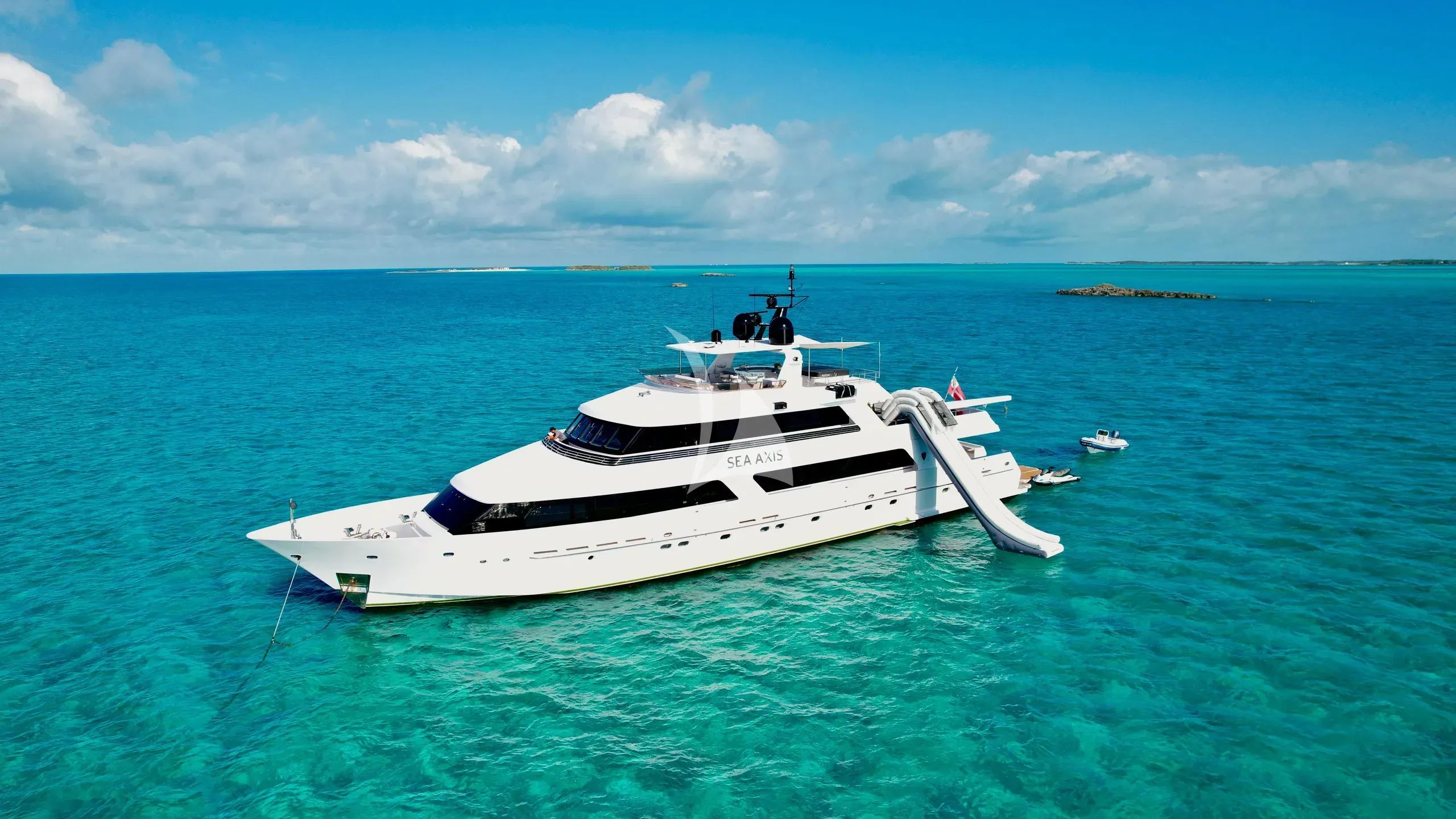 Step aboard SEA AXIS, a striking 38.1-meter Heesen masterpiece that seamlessly blends classic Dutch craftsmanship with contemporary luxury. Following an extensive $1.4 million refit in 2023, this distinguished tri-deck yacht emerges as a completely transformed charter experience, featuring pristine exterior paintwork, all-new teak decking, fresh LED lighting throughout, and exquisite new furnishings that create an atmosphere of refined elegance. Designed by renowned naval architect Frank Mulder, SEA AXIS accommodates up to 12 guests across five beautifully appointed ensuite staterooms, including an impressive on-deck Master suite, a spacious lower VIP with King bed, a custom mid-ship King stateroom, and two flexible Twin cabins. The yacht's exceptional range of 3,000 nautical miles and comfortable cruising speed of 12 knots make her perfectly suited for extended Caribbean adventures from her Nassau base at Bay Street Marina. What truly sets SEA AXIS apart is her extraordinary array of water toys and entertainment options. Guests can enjoy dual brand-new Yamaha WaveRunners, two Seabobs, an exhilarating water slide, and an impressive selection of towables and watersports equipment. The addition of an inflatable teak docking system, on-deck cinema, and rope swing ensures endless entertainment possibilities. With underway stabilizers ensuring smooth cruising and Starlink connectivity keeping guests connected, SEA AXIS delivers the perfect balance of adventure and luxury for discerning charter guests exploring the Caribbean's most spectacular destinations.