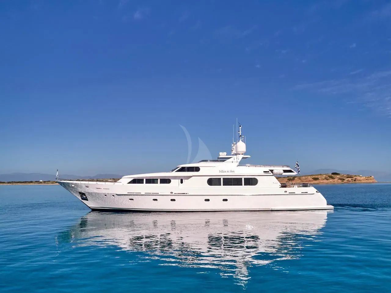 Set against the timeless beauty of the Greek coastline, MILOS AT SEA offers discerning charter guests an exceptional 35-meter Codecasa experience from her home base at Marina Flisvos, Athens. This distinguished steel-hulled yacht, originally launched in 2000 and meticulously refitted in 2022, showcases the perfect marriage of Italian craftsmanship and contemporary luxury. Her recent comprehensive refit included new hull paint, pristine teak decking, and updated windows throughout the main deck, ensuring she presents immaculately for every charter. Accommodating up to 10 guests across four beautifully appointed cabins, MILOS AT SEA features an impressive master stateroom on the main deck with his and hers en-suites, including a private sauna cabin. The full-width VIP stateroom and two twin cabins with pullman beds provide flexible sleeping arrangements, all designed by Della Role Design with meticulous attention to comfort and style. Modern amenities include stabilizers for smooth cruising, comprehensive air conditioning, and entertainment systems throughout. Adventure enthusiasts will delight in her extensive collection of water toys, including two SeaBobs, multiple kayaks and paddleboards, waterskis, wakeboard, and an array of towable toys perfect for exploring the crystalline waters of the Greek islands. With a generous 4,100 nautical mile range and comfortable 13-knot cruising speed, MILOS AT SEA opens the door to discovering the most enchanting corners of the Mediterranean, from hidden coves to vibrant island harbors.