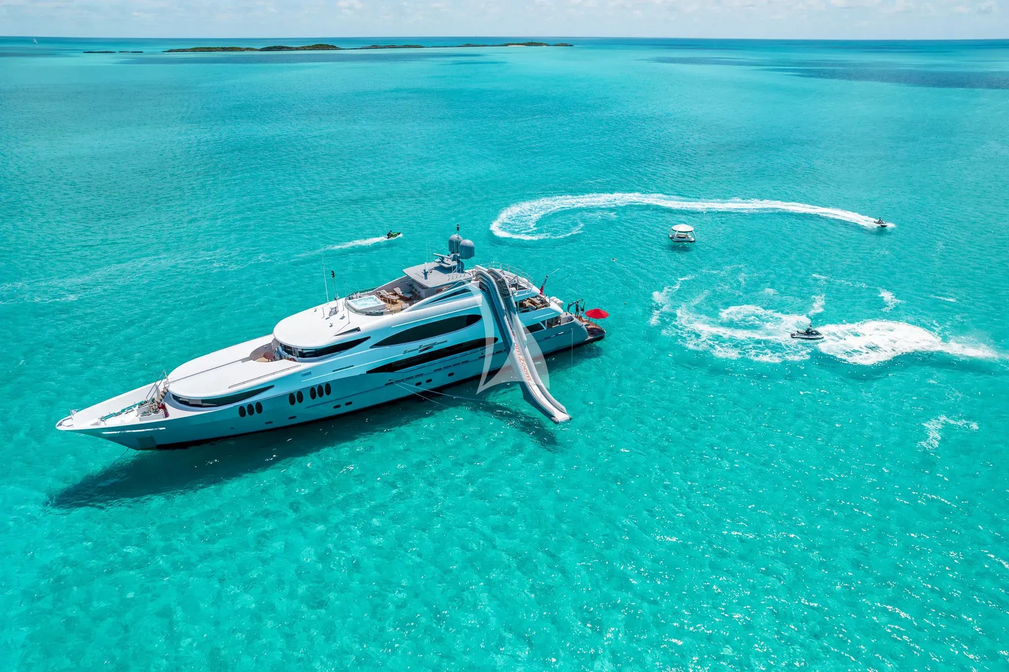 Experience the exhilarating fusion of performance and luxury aboard ZOOM ZOOM ZOOM, a magnificent 49-meter Trinity yacht that stands as one of the fastest American-built vessels in her class. This exceptional tri-deck masterpiece, enhanced by a comprehensive 2016 refit and continuous upgrades, showcases the sophisticated interior design of Evan K. Marshall throughout her five elegantly appointed staterooms. With a remarkable cruising speed of 14 knots and an impressive maximum speed of 24 knots, she delivers both thrilling performance and refined comfort for up to 10 overnight guests. ZOOM ZOOM ZOOM truly excels as the ultimate water sports platform, featuring an extraordinary collection of toys that transforms any charter into an aquatic adventure. From the powerful 40-foot Seahunter tender and dual Yamaha Wave Runners to Seabobs, flyboards, and an inflatable golf course, every conceivable water activity awaits. The yacht's impressive amenities extend to a sundeck waterslide, inflatable island, and comprehensive collection of paddleboards, kayaks, and towables that ensure endless entertainment for guests of all ages. Operating year-round from Fort Lauderdale, this semi-displacement aluminum yacht combines Trinity's renowned American craftsmanship with cutting-edge amenities including Starlink connectivity, comprehensive stabilization systems, and flexible dining venues. Whether pursuing high-octane water sports or seeking sophisticated relaxation, ZOOM ZOOM ZOOM delivers an unparalleled charter experience that perfectly balances adrenaline-fueled adventure with luxurious comfort.
