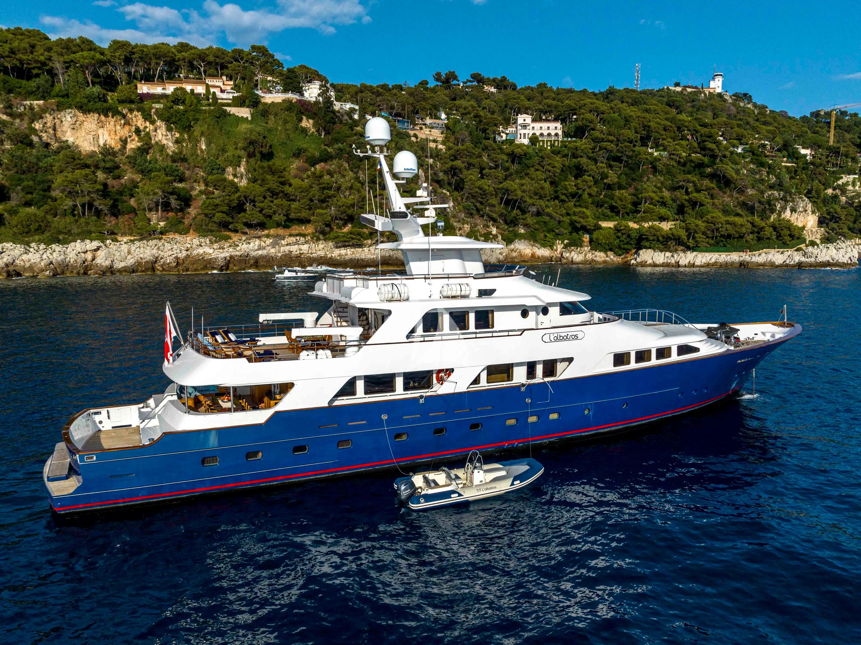 L'ALBATROS presents an exceptional opportunity to explore the stunning Mediterranean waters with the perfect blend of classic elegance and modern luxury. This impressive 43.59-meter Sterling yacht, recently refreshed in 2022, offers a sophisticated charter experience for up to 12 guests across six beautifully appointed cabins. The full-beam master stateroom on the main deck serves as a luxurious sanctuary, featuring marble-floored ensuite facilities, entertainment systems, and an adjacent private study for those requiring a quiet retreat. Designed for the ultimate Mediterranean adventure, L'ALBATROS showcases her tri-deck configuration with exceptional outdoor living spaces and comprehensive stabilization systems ensuring comfort both underway and at anchor. Her impressive arsenal of water toys transforms any anchorage into a private playground, featuring dual Yamaha waverunners, advanced Seabobs, kayaks, stand-up paddleboards, and an exciting selection of towables including flyfish and banana rides. Professional fishing equipment completes the aquatic offerings for those seeking the thrill of Mediterranean angling. Based year-round in the captivating port of Naples, L'ALBATROS provides unparalleled access to Italy's legendary Amalfi Coast, the glamorous islands of Capri and Ischia, and the archaeological wonders of the Bay of Naples. With her generous 3,000 nautical mile range and comfortable 12-knot cruising speed, this distinguished yacht opens the door to extended Mediterranean voyages, from the French Riviera to the Greek Isles, all while maintaining the highest standards of luxury and service.