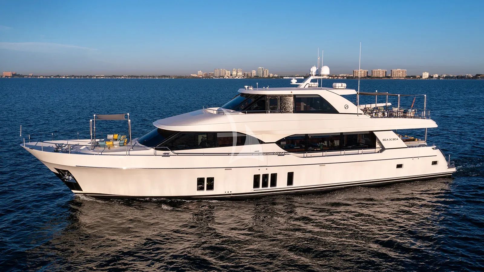 Discover the perfect blend of performance and luxury aboard SEA N SEA, a stunning 100-foot Ocean Alexander that redefines the charter experience in the Bahamas. Built in 2016 and meticulously maintained as a turnkey vessel, this semi-displacement yacht showcases the exceptional design prowess of naval architect Evan K. Marshall, delivering both impressive cruising capabilities and sophisticated comfort for up to eight overnight guests. SEA N SEA's thoughtfully configured lower deck features four beautifully appointed staterooms, including a master suite with king bed and forward VIP with queen accommodation. Two flexible guest cabins offer convertible twin-to-queen arrangements, ensuring comfort for any group configuration. The yacht's 16-knot cruising speed and impressive 24-knot maximum provide swift passage between the crystal-clear waters and pristine islands of the Bahamas, while advanced stabilization systems ensure smooth sailing both underway and at anchor. Adventure seekers will delight in SEA N SEA's exceptional water sports collection, featuring a impressive 42-foot Invincible chase boat, dual jet skis, SeaBob underwater scooter, paddleboards, and wakeboarding equipment. Whether exploring secluded coves, diving pristine reefs, or enjoying high-energy water sports, this yacht transforms every moment into an unforgettable experience. Based year-round in Florida with easy access to the Bahamas' most coveted destinations, SEA N SEA offers the ultimate platform for discerning charter guests seeking both relaxation and exhilaration in one of the world's most beautiful cruising grounds.