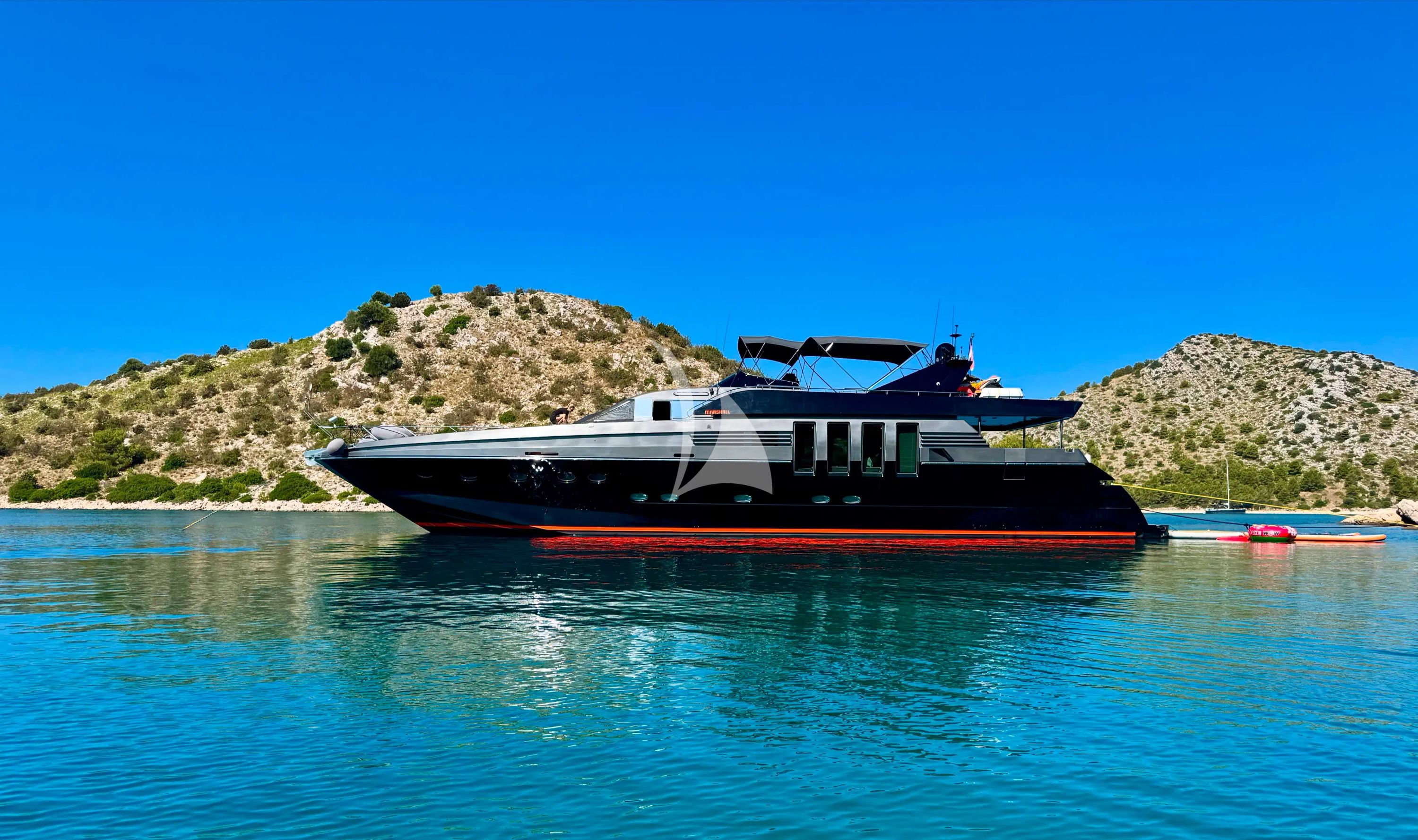 Discover the perfect blend of Italian craftsmanship and modern luxury aboard MARSHALL, a stunning 27-meter Posillipo motor yacht that has been meticulously refit in 2025. This elegant vessel combines timeless Mediterranean styling with contemporary amenities, creating an exceptional charter experience for up to eight guests along Croatia's breathtaking Adriatic coastline. MARSHALL's thoughtfully designed interior features four beautifully appointed cabins, including a spacious master suite and VIP stateroom, complemented by two comfortable twin cabins. The yacht's flybridge configuration maximizes both indoor and outdoor living spaces, while her semi-displacement hull delivers smooth cruising at 15 knots and exhilarating speeds up to 25 knots when adventure calls. What truly sets MARSHALL apart is her impressive collection of water toys that transforms every anchorage into an aquatic playground. From the thrilling jetpack and e-foil to dual Seabobs for underwater exploration, plus jet ski, wakeboard, water skis, and stand-up paddleboards, guests can dive into endless entertainment. Based in the historic port of Split, MARSHALL provides the ideal platform to explore Croatia's stunning islands, crystalline waters, and charming coastal towns. With modern amenities including 4/5G internet connectivity, comprehensive air conditioning, and professional water makers, every detail has been considered to ensure an unforgettable yachting experience in one of the Mediterranean's most coveted destinations.