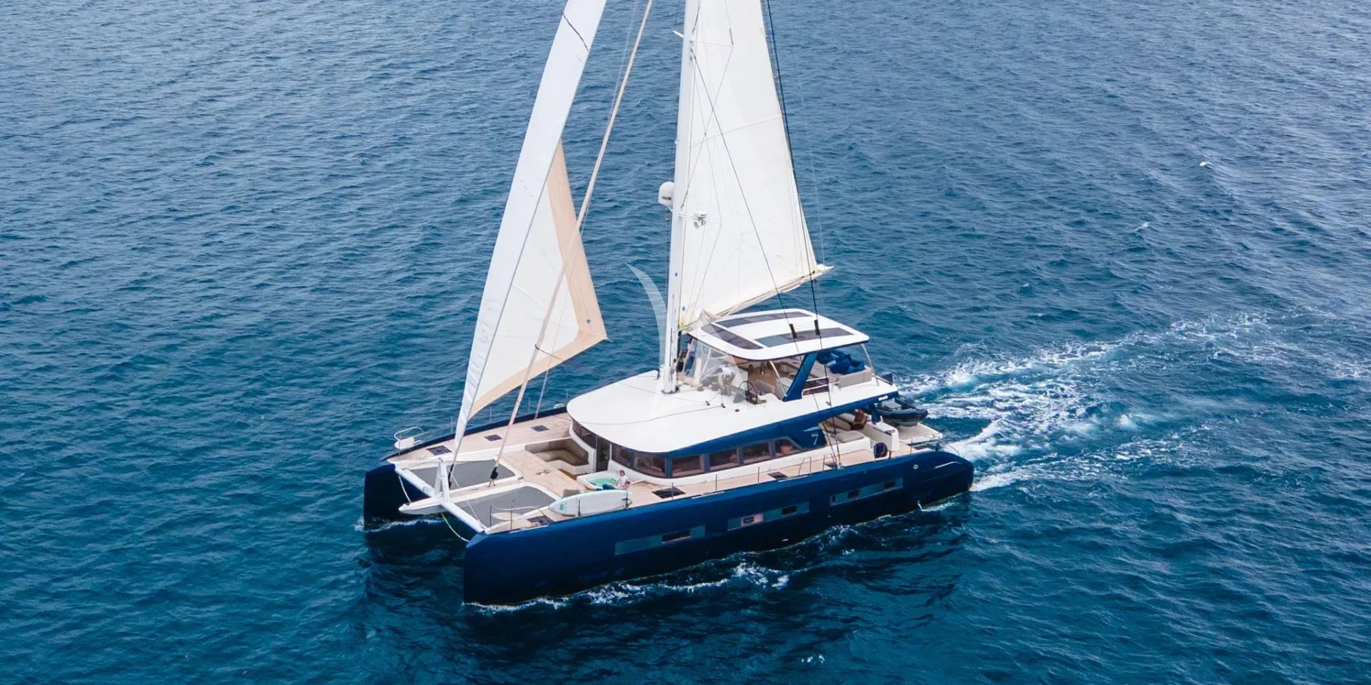 MANE ET NOCTE represents the pinnacle of modern catamaran luxury, combining Lagoon's renowned craftsmanship with the sophisticated design expertise of VPLP Design and Nauta Design. This stunning 78-foot catamaran, fresh from her comprehensive 2025 refit, offers an unparalleled charter experience for up to 10 guests across four thoughtfully configured cabins. The master suite features a remarkable private hydraulic balcony, while additional accommodations include a VIP double cabin, a convertible guest cabin, and a unique fourth cabin with four single beds – perfect for families or groups seeking flexible sleeping arrangements. The yacht's impressive beam of 11 meters creates expansive living spaces both inside and out, while her shallow 1.9-meter draft opens doors to secluded anchorages and pristine beaches. MANE ET NOCTE's flybridge superstructure maximizes outdoor entertainment areas, complemented by an exceptional array of water toys including two Seabob F5 S units, wingfoil equipment, an inflatable Tiwal sailboat, and a Jacuzzi for ultimate relaxation. Following her season in the exotic Seychelles and recent South African refit featuring new North Sails Dyneema sails and refreshed interiors, MANE ET NOCTE will be perfectly positioned for Caribbean adventures from November 2025. Whether exploring the crystalline waters of Corsica and Sardinia during summer months or discovering hidden Caribbean gems, this exceptional catamaran delivers the space, comfort, and versatility that discerning charter guests demand.
