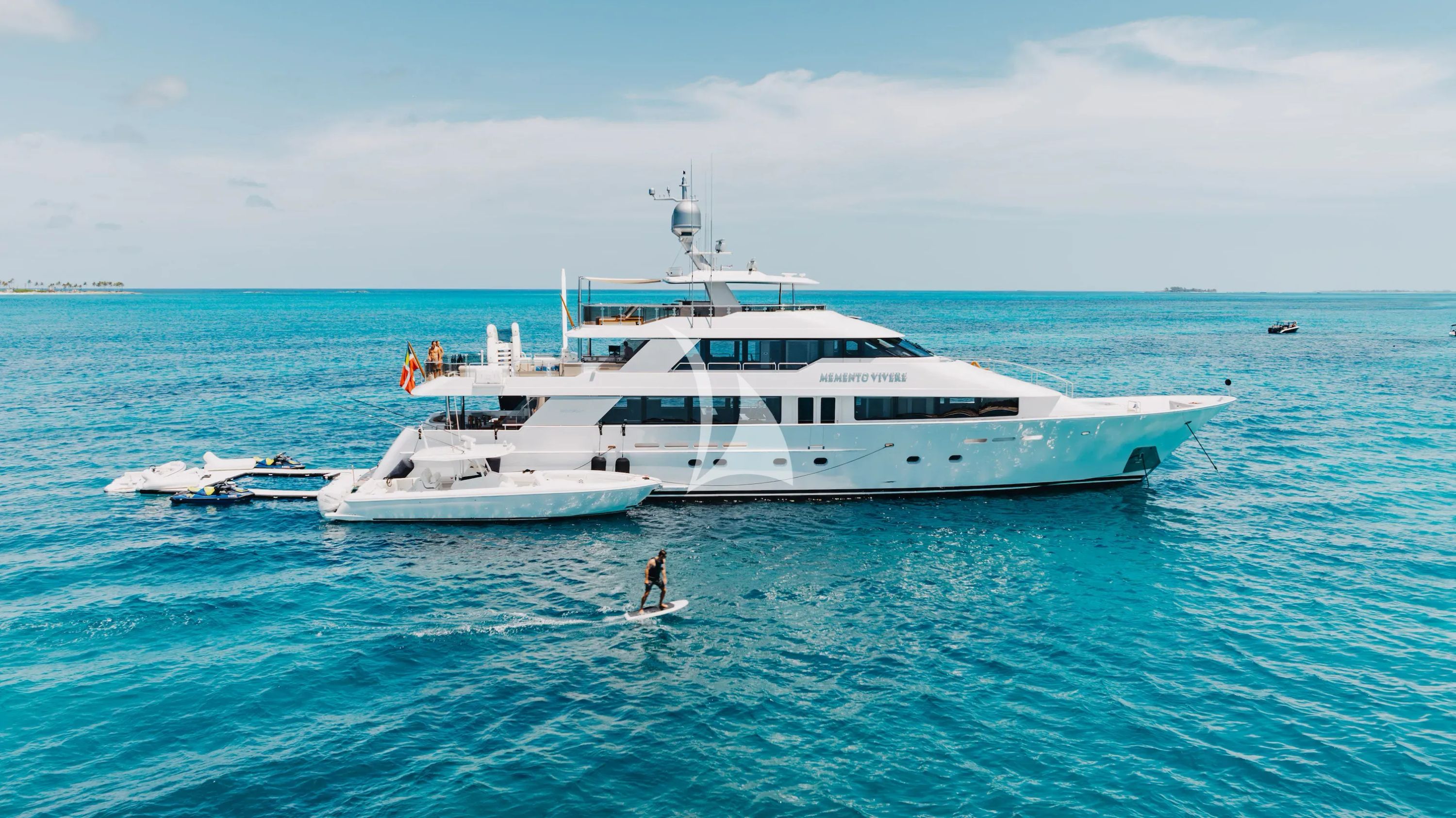 MEMENTO VIVERE exemplifies the perfect fusion of American craftsmanship and refined luxury charter experiences. This impeccably maintained 130-foot Westport tri-deck motor yacht underwent an extensive 2021 refit, emerging with completely refreshed interiors featuring new marble, carpeting, and upgraded AV systems throughout. Her sophisticated accommodations welcome up to 10 guests across five beautifully appointed staterooms, including a magnificent master suite with California King bed, private office, and spa-like ensuite with waterfall shower, plus a generous VIP stateroom and flexible twin/convertible configurations. What truly sets MEMENTO VIVERE apart is her exceptional toy collection, transforming every charter into an aquatic adventure. The impressive fleet includes a 40-foot Intrepid chase boat, twin SeaDoo jet skis, Seabobs, E-foils, and an inflatable slide, ensuring endless entertainment for guests of all ages. Her shallow 6.4-foot draft opens access to secluded anchorages throughout the Caribbean, while advanced stabilization systems guarantee comfort both underway and at anchor. Based seasonally between the crystalline waters of the Bahamas and the exotic Caribbean islands of St. Thomas and St. Martin, MEMENTO VIVERE offers the ultimate platform for exploring pristine beaches, vibrant coral reefs, and exclusive island destinations. With her impressive 2,000-nautical-mile range and comfortable 14-knot cruising speed, she delivers seamless island-hopping adventures in absolute luxury and style.