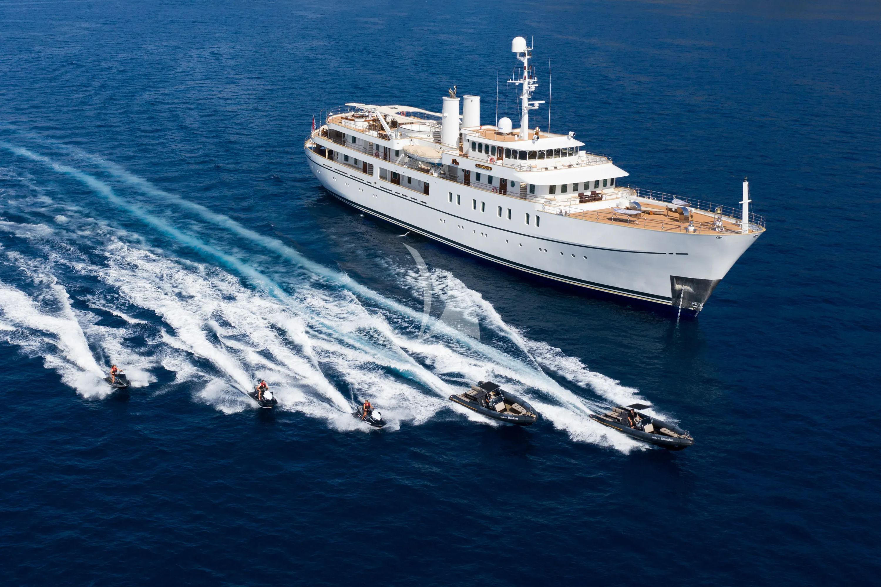 What truly sets SHERAKHAN apart is her extraordinary collection of water toys and her unique expedition capabilities. From the thrilling 9-meter slide installed in 2024 to multiple WaveRunners, Seabobs, and a comprehensive tender fleet including a powerful 12.8-meter chase boat, every aquatic adventure awaits. The yacht's floating docks create an exceptional swim platform experience, while equipment ranges from efoils to traditional fishing gear, ensuring entertainment for every preference.