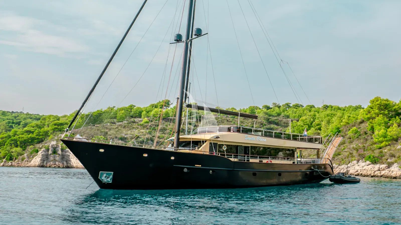 Launched in 2023, the 27-meter motor-sailer Santa Clara represents the perfect fusion of contemporary luxury and timeless sailing tradition. This stunning steel-hulled vessel, crafted by renowned naval architects NaviMAX with interiors by Plava Skuna, offers an intimate yet sophisticated charter experience for up to eight guests along Croatia's breathtaking Adriatic coastline. Santa Clara's thoughtfully designed accommodation features four beautifully appointed en-suite cabins, including three elegant doubles and one twin, ensuring privacy and comfort for every guest. The yacht's flybridge superstructure provides exceptional outdoor living spaces, while her displacement hull delivers smooth, stable cruising at nine knots through Croatia's crystal-clear waters. Based conveniently in Split, guests embark just a ten-minute stroll from the UNESCO World Heritage Diocletian Palace, positioning you perfectly to explore the Dalmatian coast's hidden coves and historic islands. The yacht's impressive collection of water toys transforms every anchorage into an aquatic playground. From the exhilarating Sea-Doo Spark jetski and Seabob underwater scooter to traditional water skiing, paddleboards, and kayaks, Santa Clara caters to adventurers of all ages and preferences. Whether seeking adrenaline-pumping water sports or peaceful exploration of secluded bays, this exceptional motor-sailer delivers an unforgettable Croatian charter experience that seamlessly blends luxury, adventure, and the timeless allure of the Mediterranean.